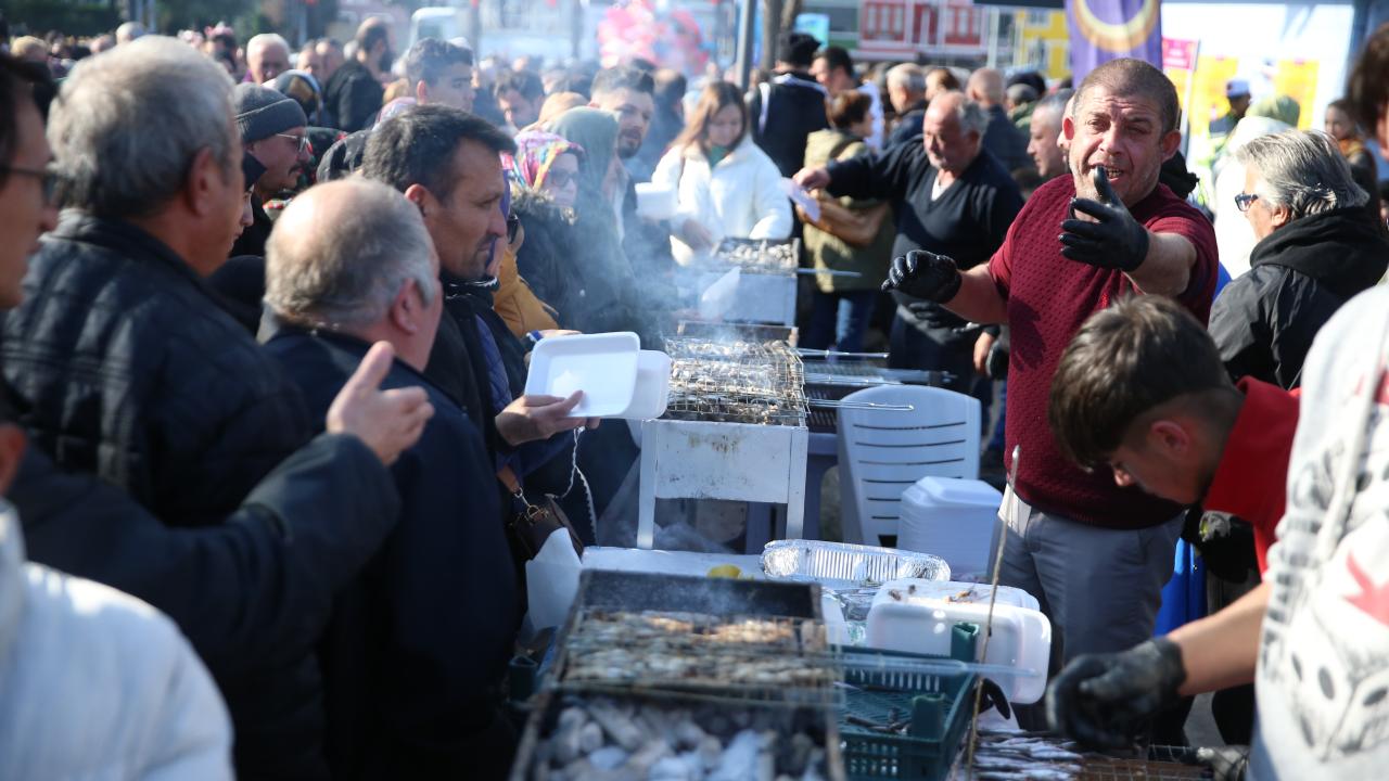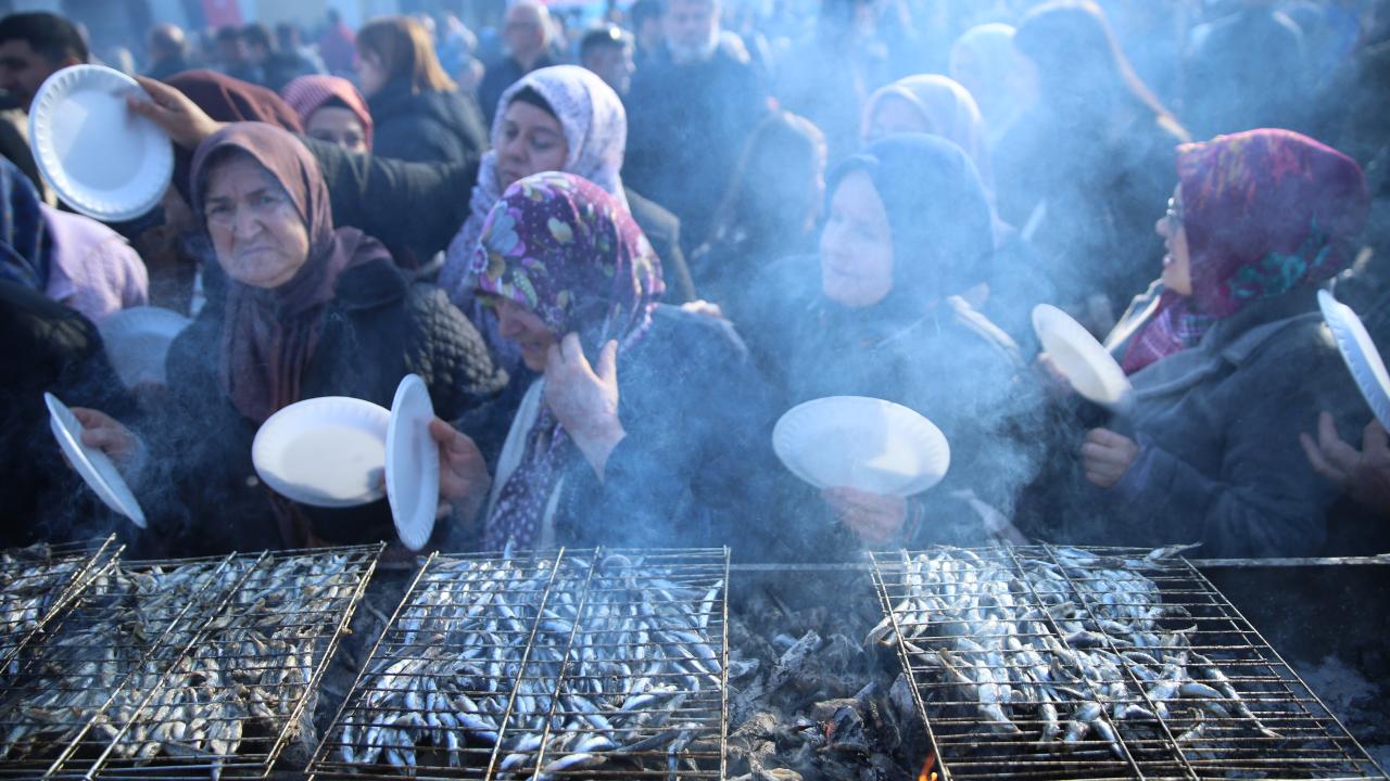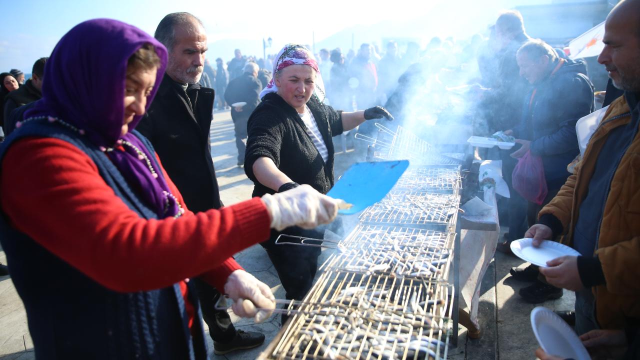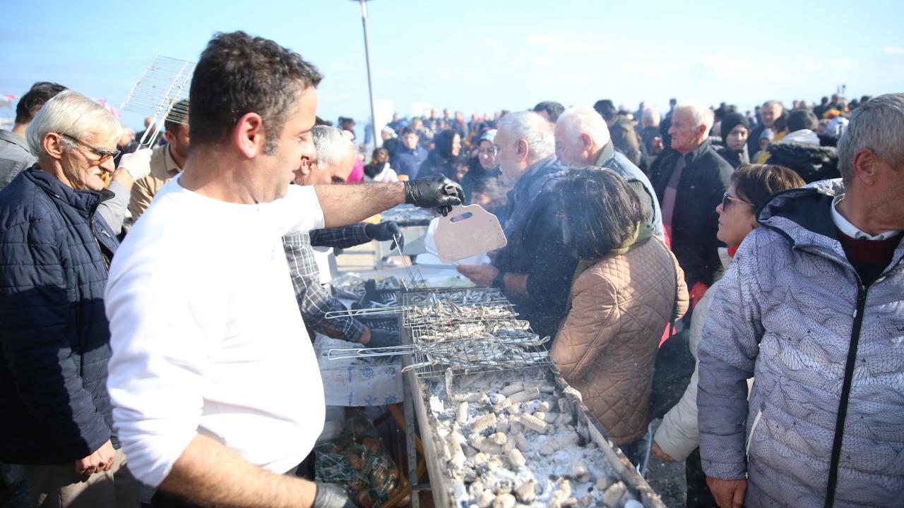 İlçe sahilindeki alanda kurulan ızgaralarda pişirilen 10 ton hamsi, katılımcılara dağıtıldı.