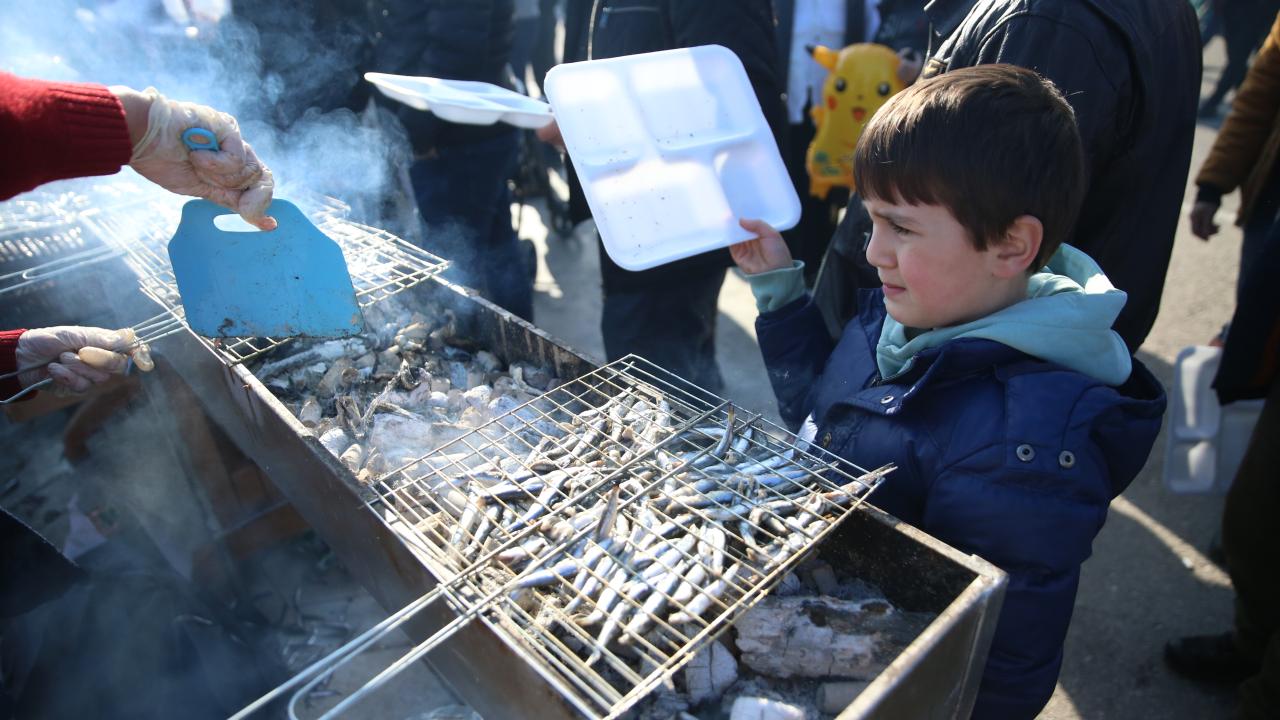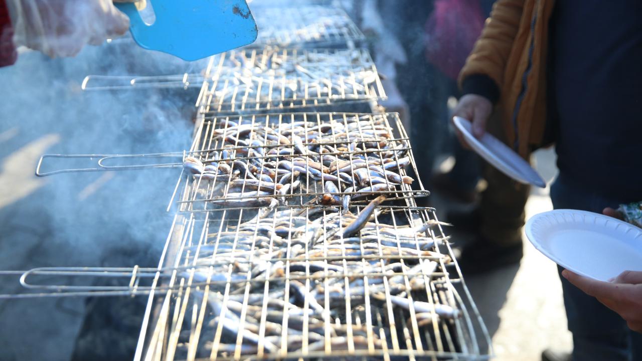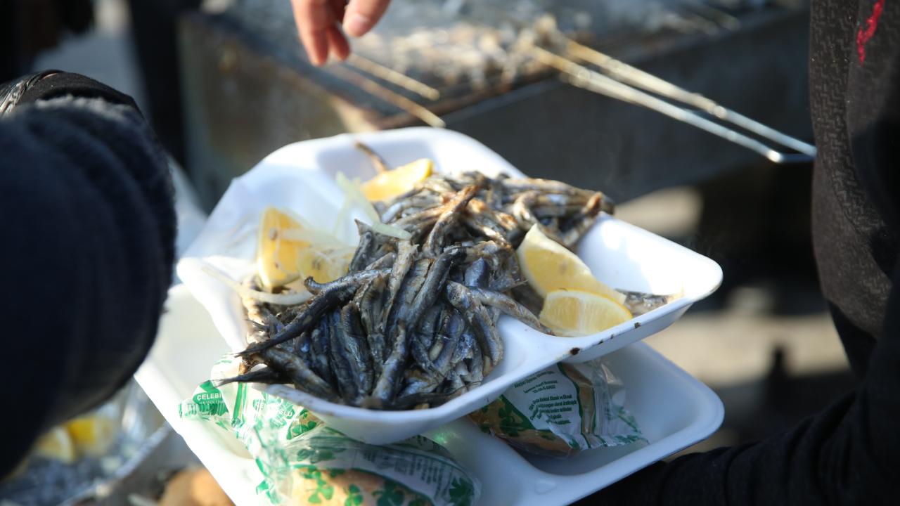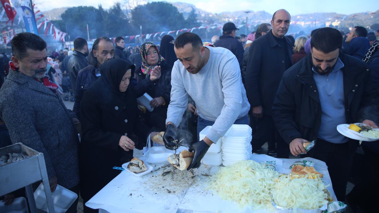 İlçe sahilindeki alanda kurulan ızgaralarda pişirilen 10 ton hamsi, katılımcılara dağıtıldı.