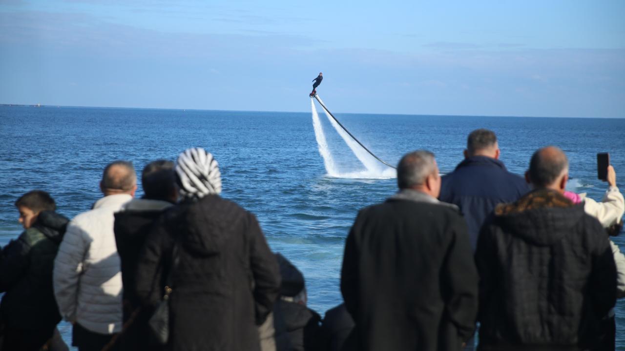 Yöresel sanatçıların konser verdiği festivalde, Ordu Büyükşehir Belediyesi itfaiye ekipleri su üzerinde flyboard gösterisi yaptı.