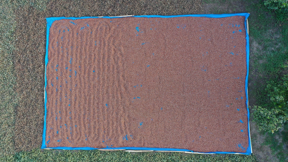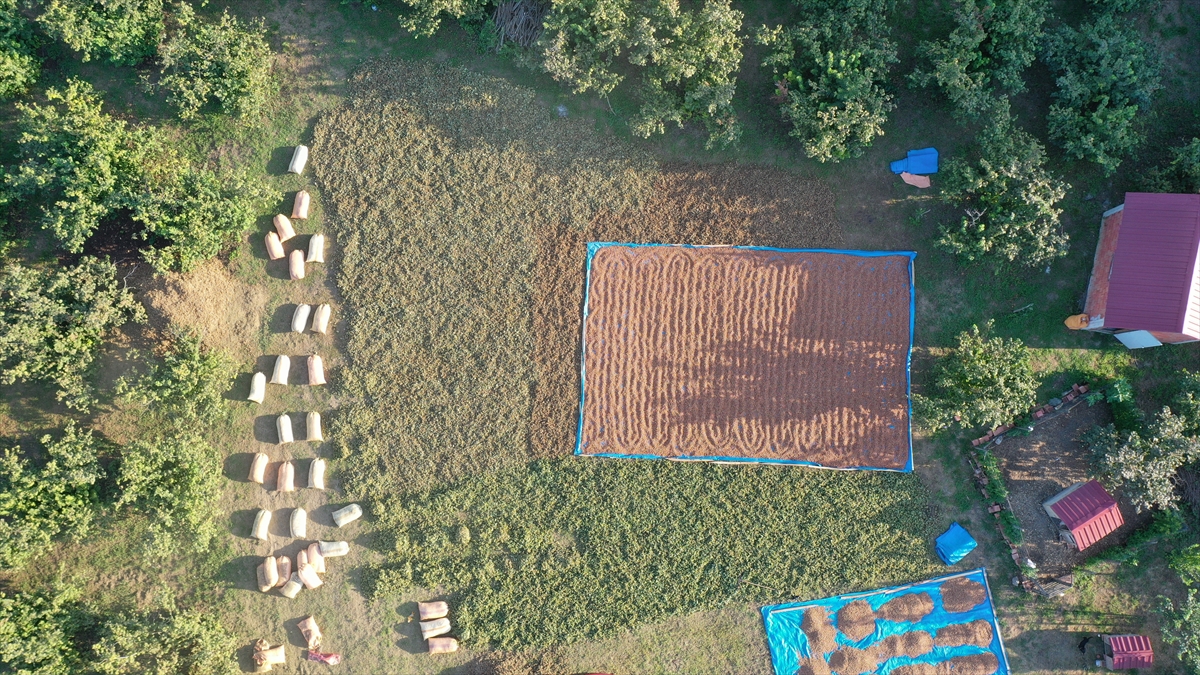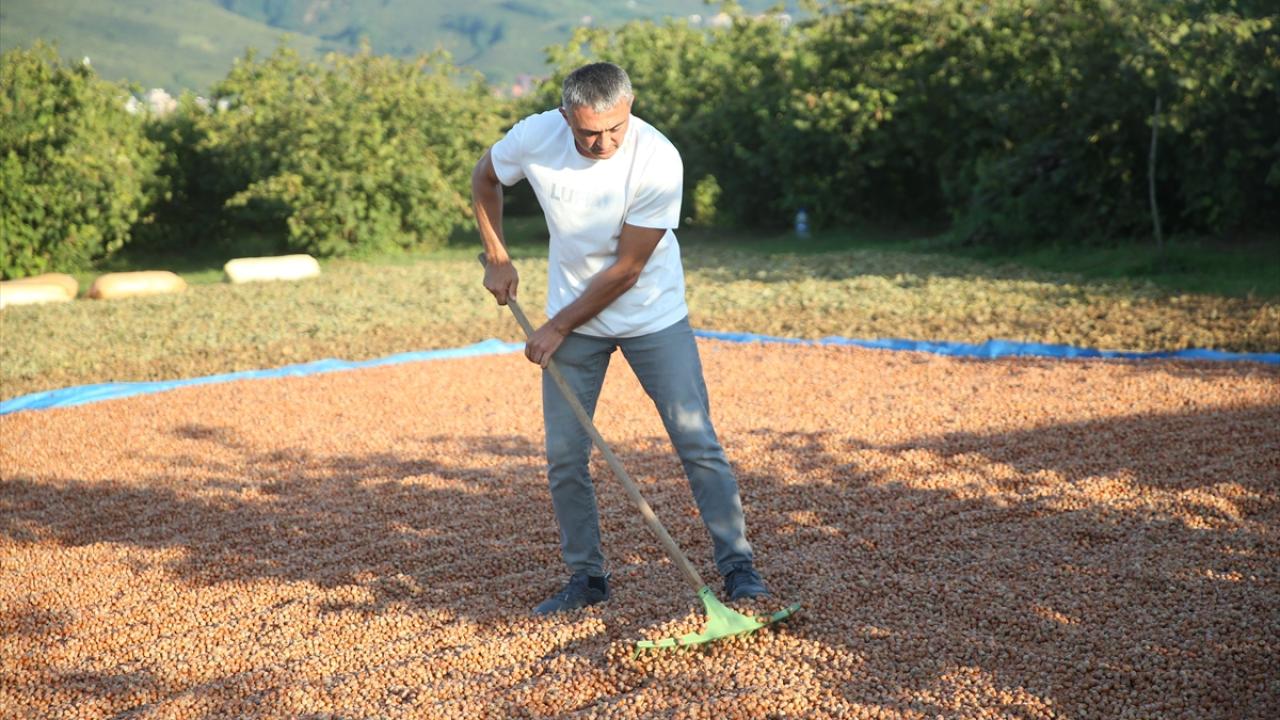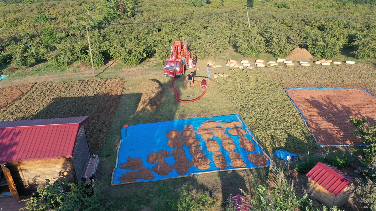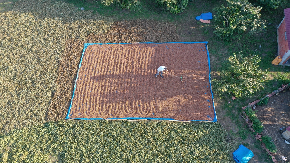 Sahil kesiminde bahçelerinde olgunlaşan ürünlerini aile bireyleri ya da tarım işçileriyle toplayan üreticiler, fındığı zurufundan daha kolay ayrılması için bir süre harmana sererek kuruttu.