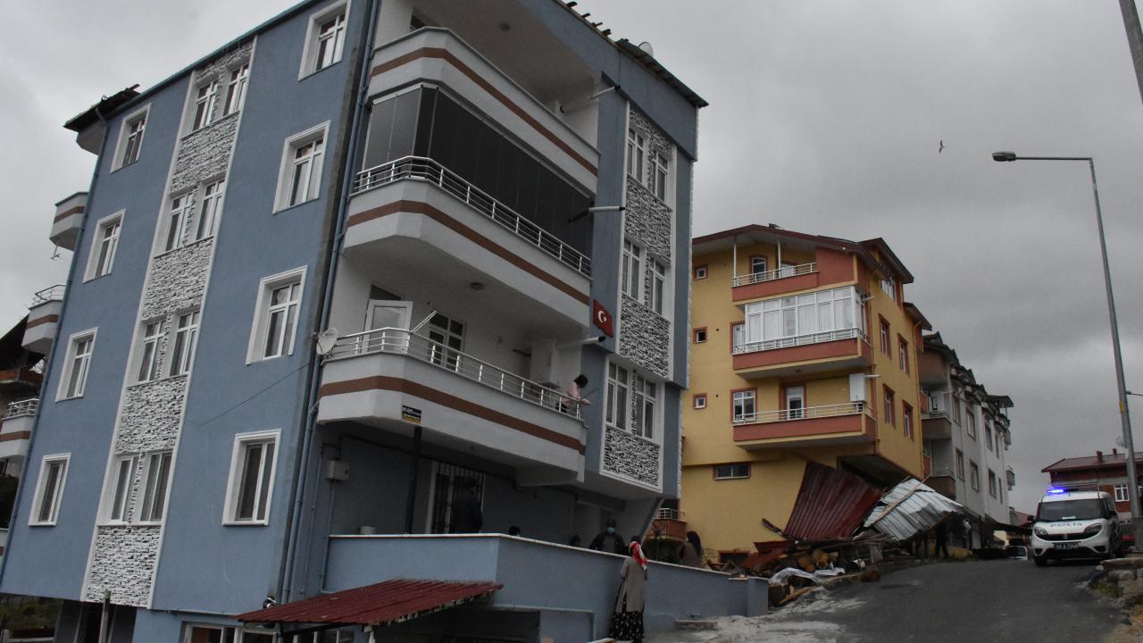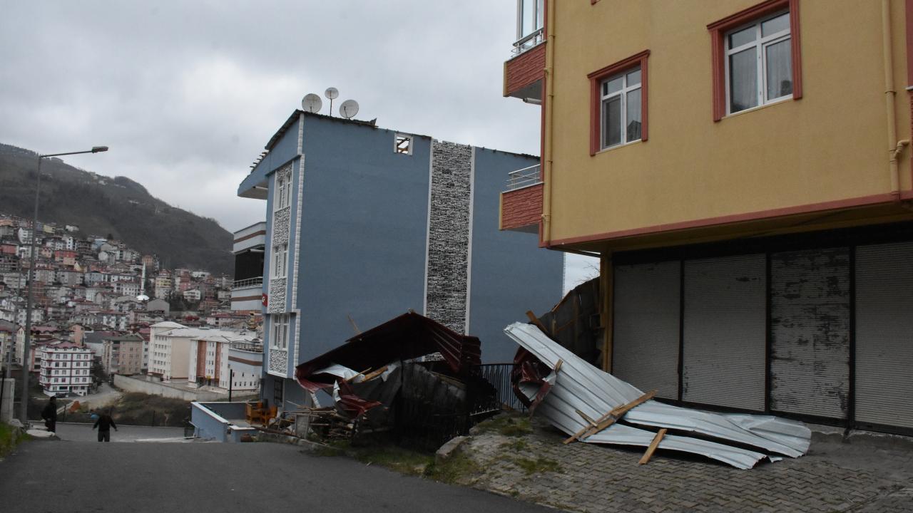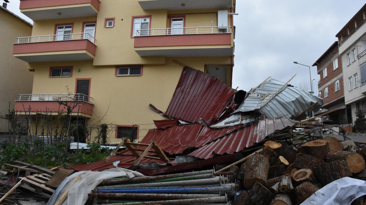İlçeye bağlı Bucak Mahallesi`nde ise 4 katlı bir binanın çatısı boş araziye uçtu.