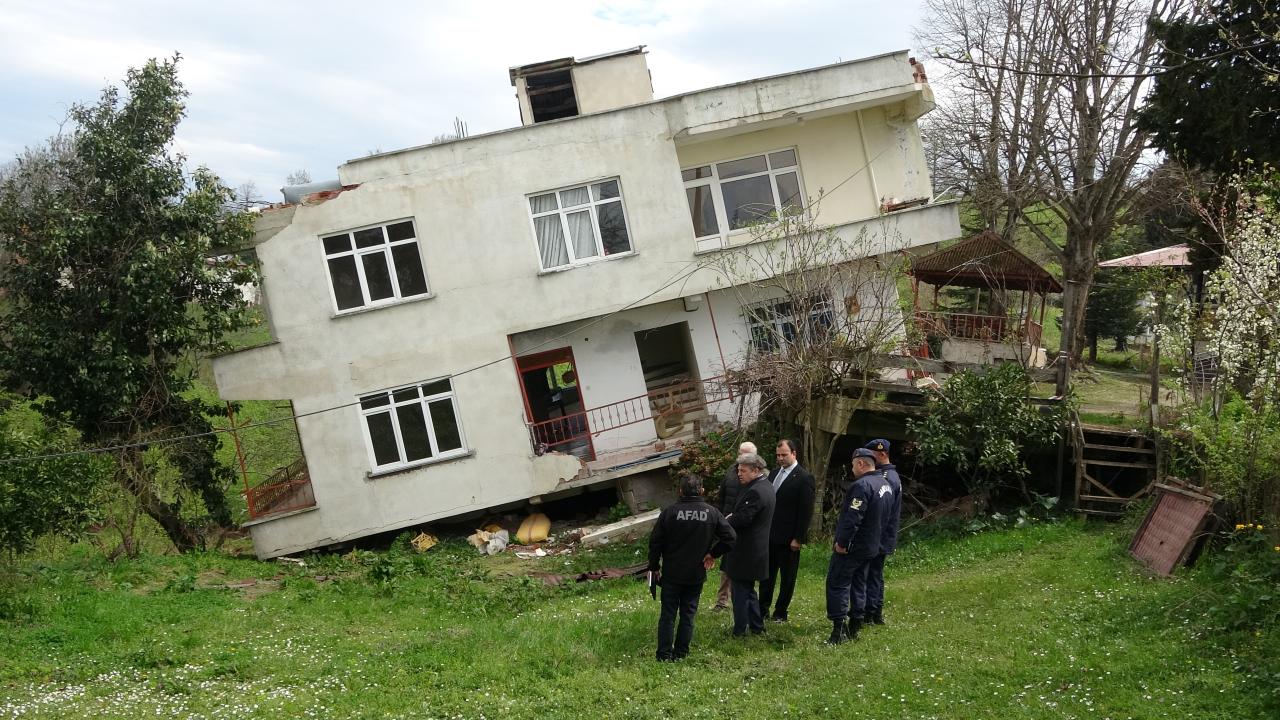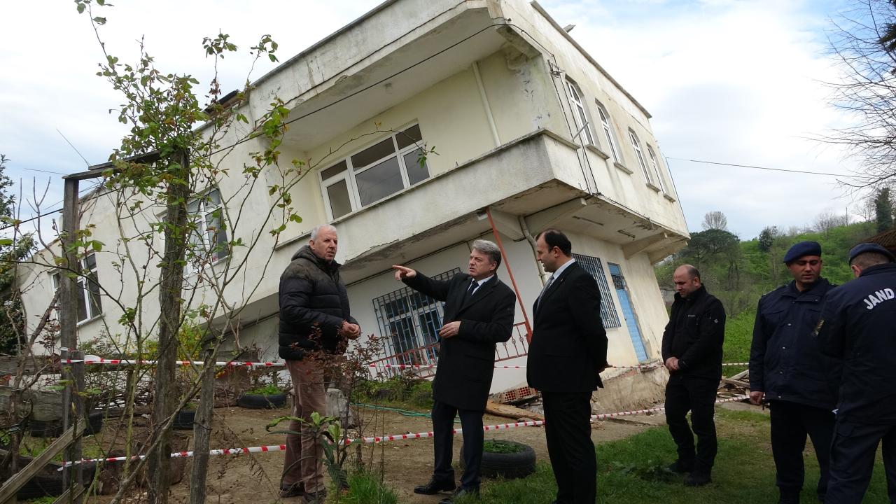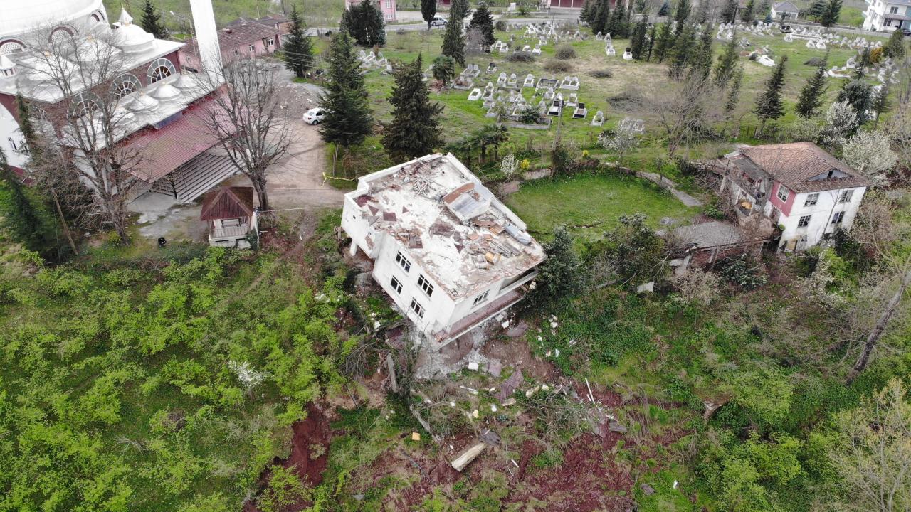 Yeni heyelanlar sonucu daha önce boşaltılan 2 katlı bina yan yattı, diğerlerinde de hasar oluştu. Bölgeye gelen ekipler, binanın çevresinde güvenlik önlemi aldı.