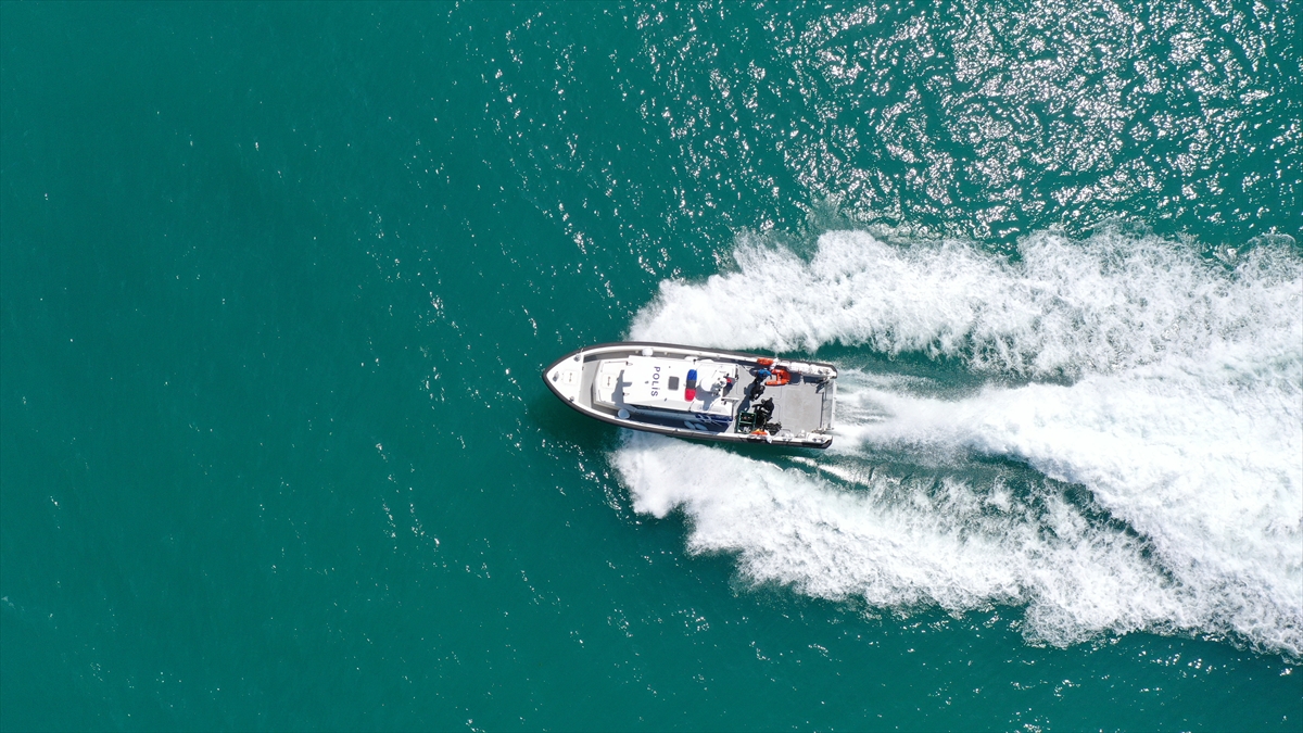 Deniz polisi ve itfaiye su altı ve su üstü arama kurtarma ekibi, her an göreve çıkacak şekilde eğitimlerine devam ediyor.