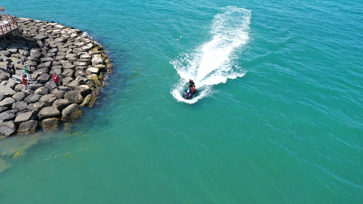 Dalgıçların, Altınordu ilçesine bağlı Akyazı sahilindeki antrenman ve tatbikatları dronla görüntülendi.