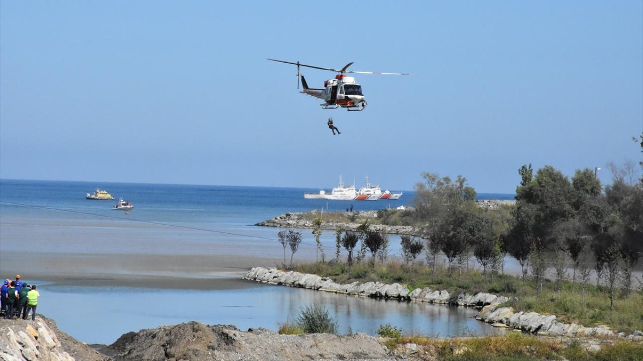 Ekiplerin sudan ve karadan, helikopterle de havadan olaylara müdahale ettiği tatbikat, gerçeğini aratmadı.