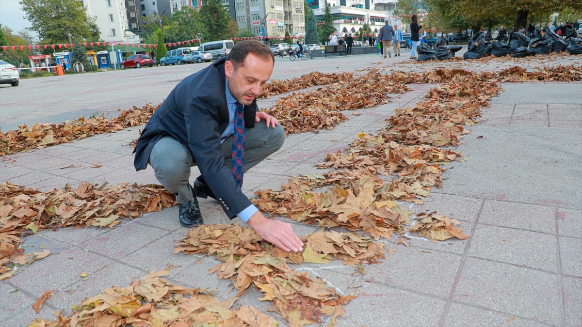 Fatsa Belediyesi temizlik işçileri, sahil kesimindeki parkta topladıkları sonbahar renklerine bürünmüş yaprakları 15 Temmuz Özgürlük Meydanı`na getirdi.