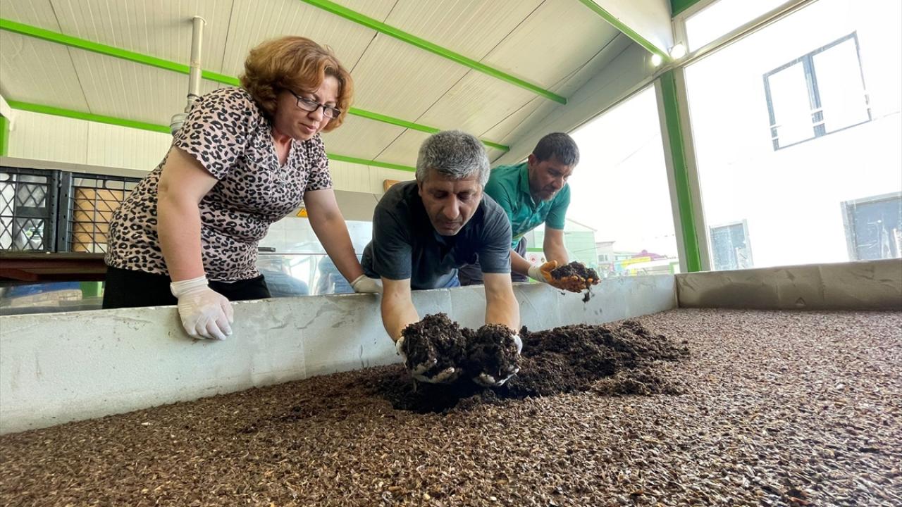 Hacıoğlu, solucan gübresi üretimi için kullandıkları yöntemi Türkiye`de kimsenin uygulamadığını, tamamen meyve ve sebzelerle solucan gübresi ürettikleri kaydetti.
