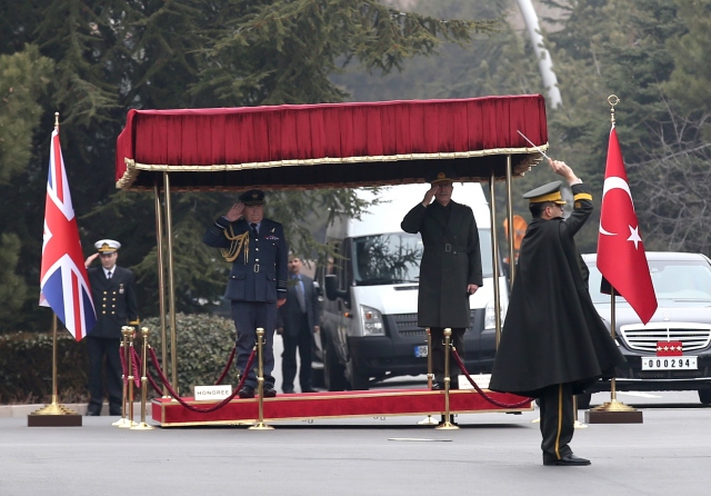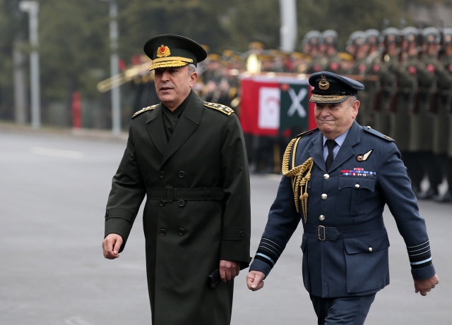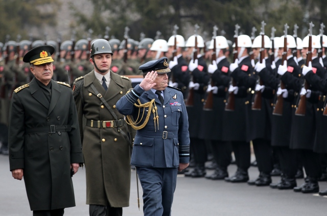 Genelkurmay Başkanı Orgeneral Hulusi Akar, İngiltere Genelkurmay Başkanı Orgeneral Sir Stuart Peach'i resmi törenle karşıladı.