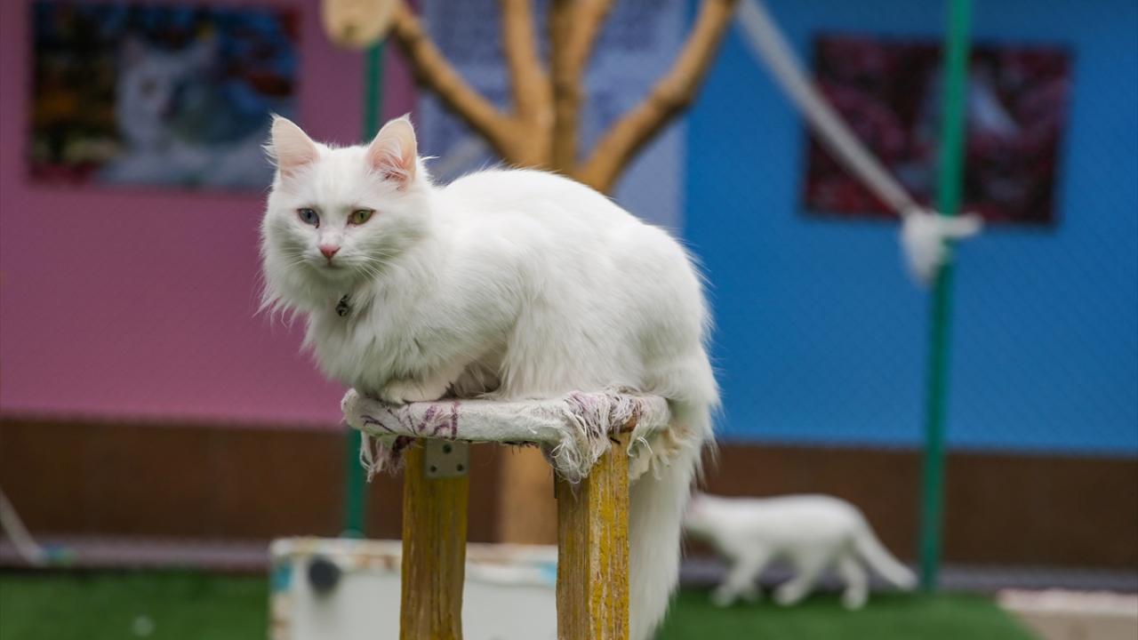 Van YYÜ Kedisi Araştırma ve Uygulama Merkezi`nin Kedi Villası`nda koruma altında tutulan kedilerden damızlık olarak belirlenen 30 kedi, özel odalarda özenle bakılıyor.