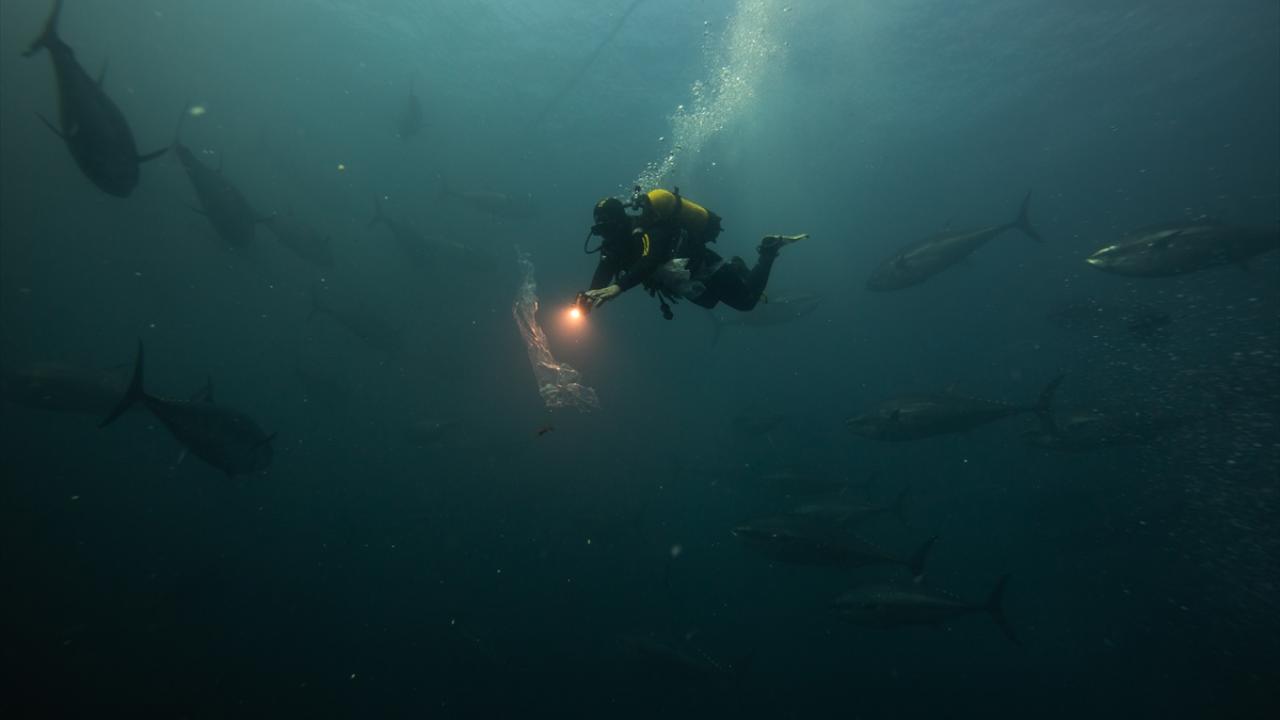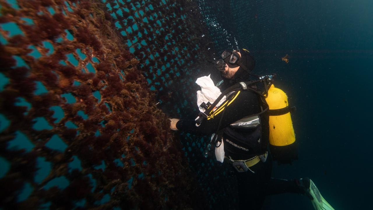 Balıkların bulunduğu ağların 25 metre derinliğinde olduğunu, Karaburun açıklarında deniz derinliğinin ise yer yer 15 metreye düştüğünü belirten Ulucan, bu bölgelerden geçiş yaparken dalgıçların su altında kafesleri yukarıya doğru topladığını ifade etti.