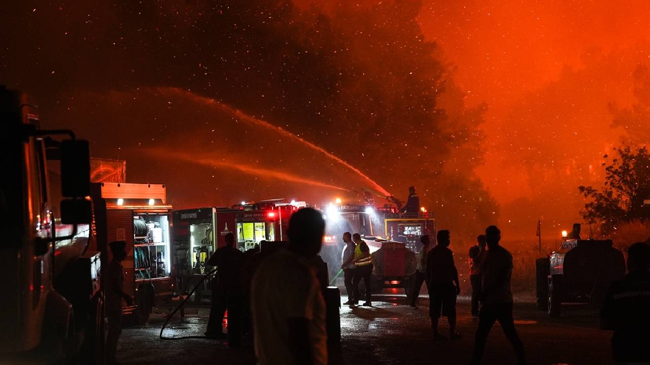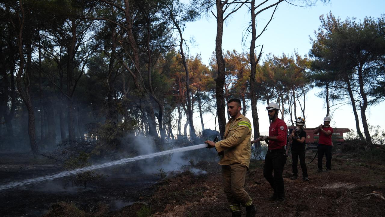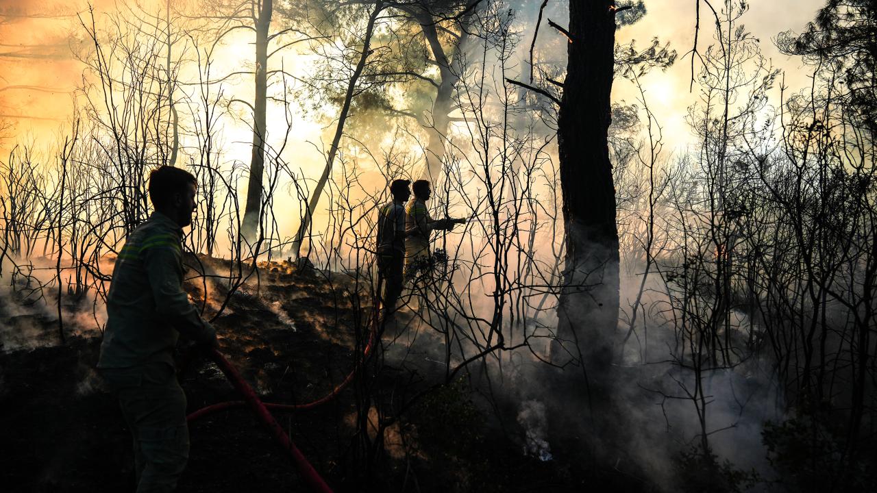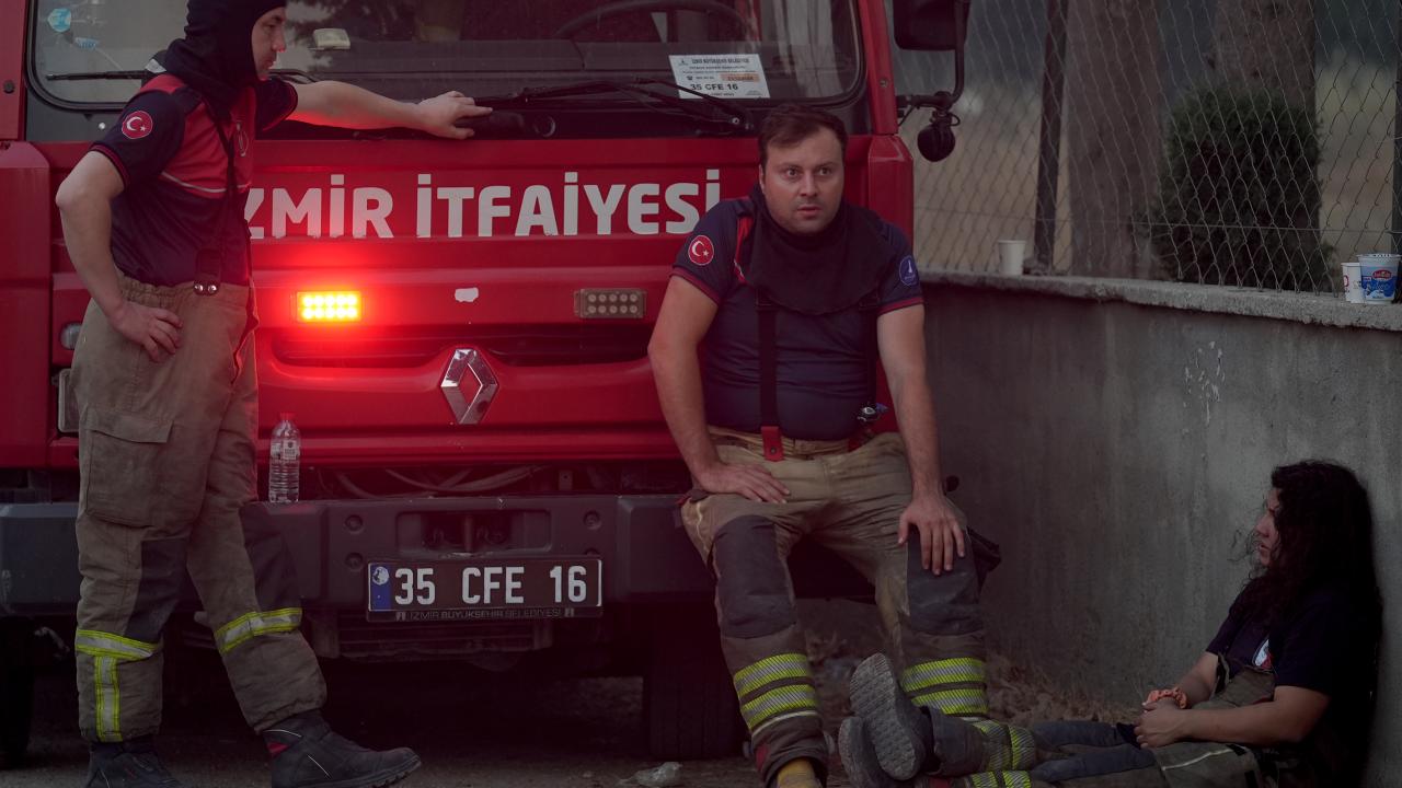İzmir'de çıkan orman yangınlarında zorlu arazi koşulları ve ateş çemberleriyle karşı karşıya kalan orman işçileri amansız bir mücadele örneği sergiliyor.