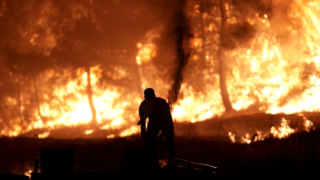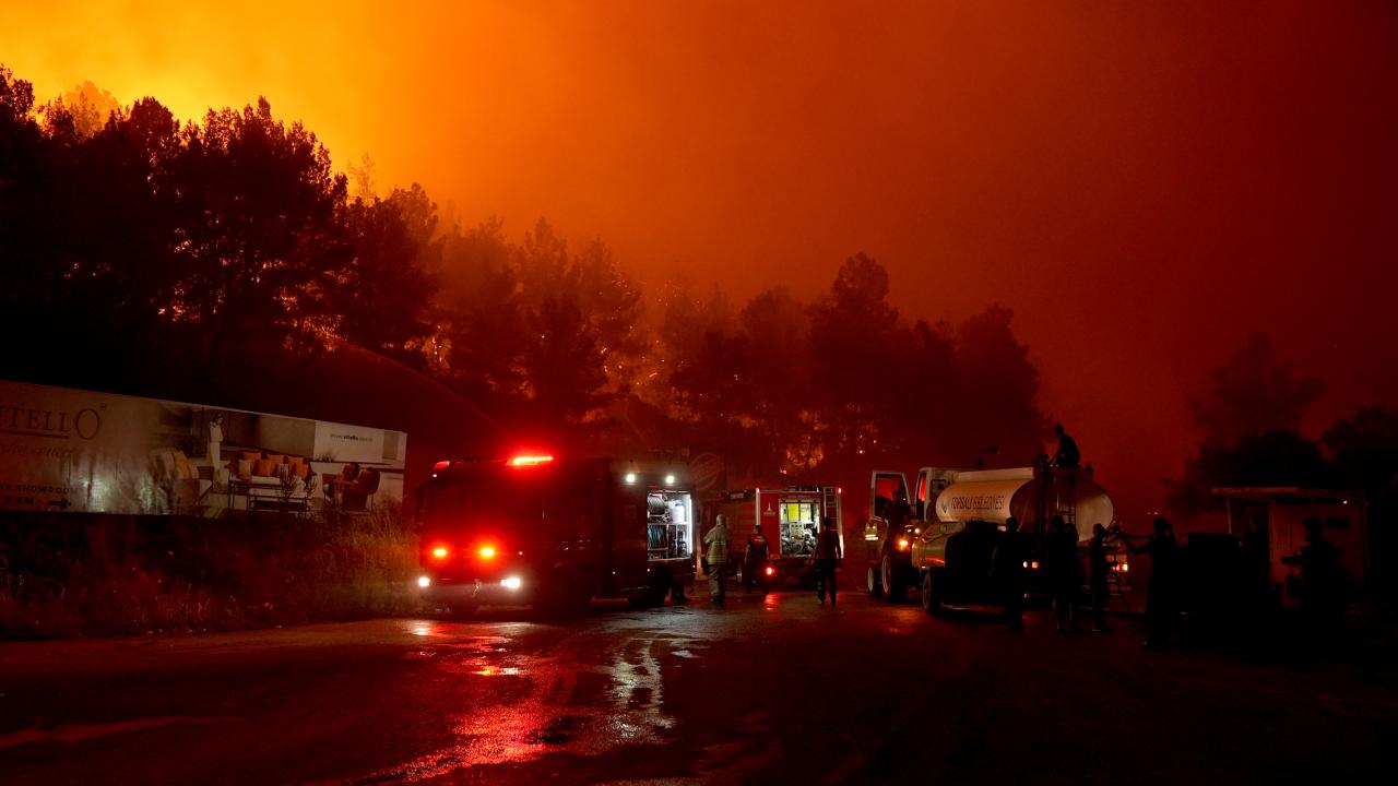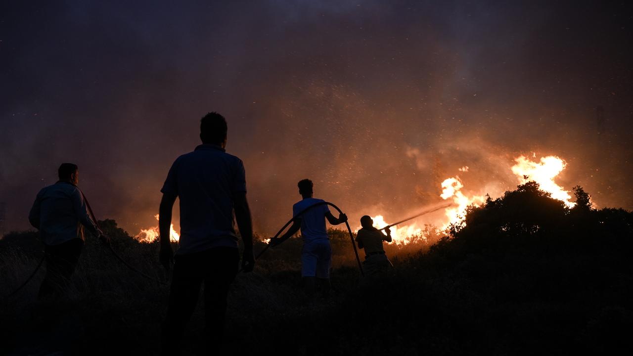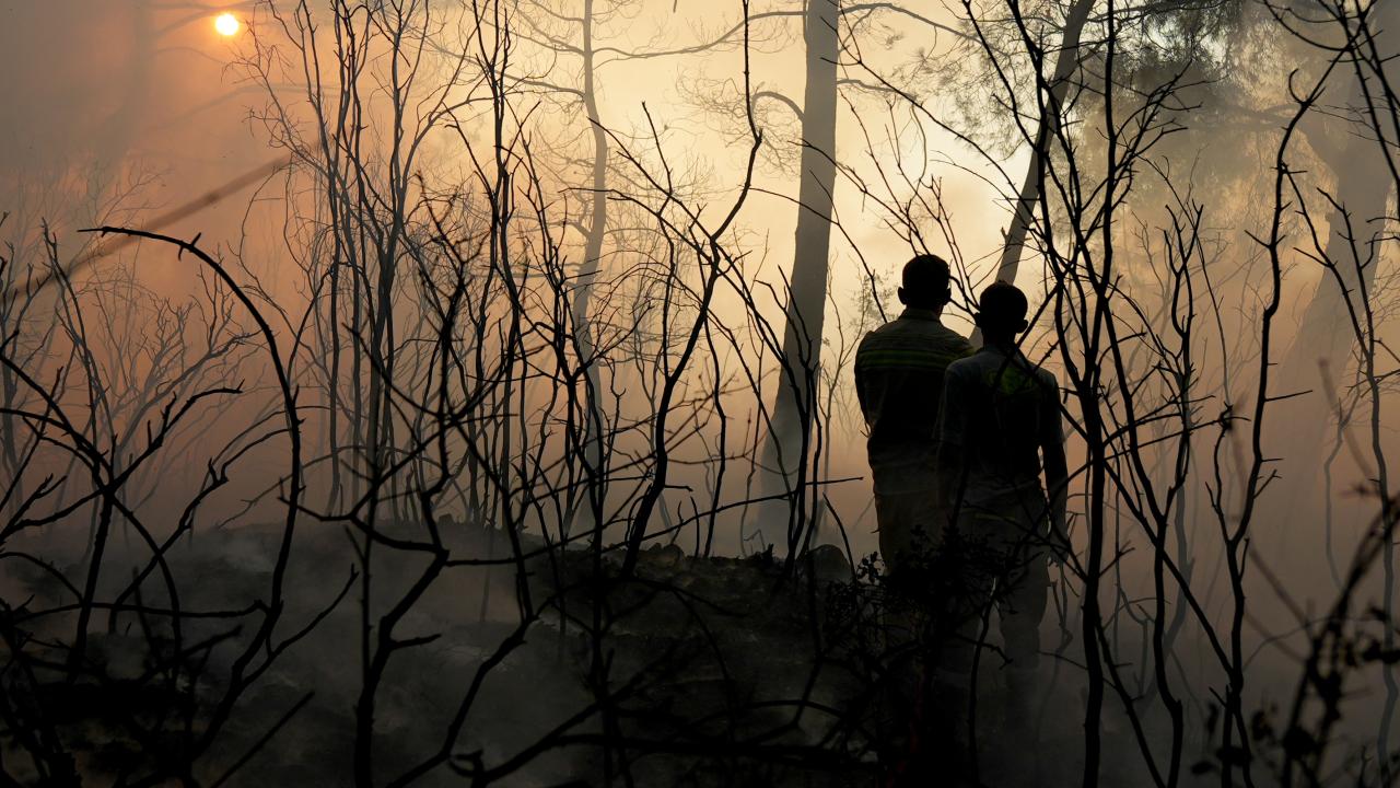İzmir'de çıkan orman yangınlarında zorlu arazi koşulları ve ateş çemberleriyle karşı karşıya kalan orman işçileri amansız bir mücadele örneği sergiliyor.