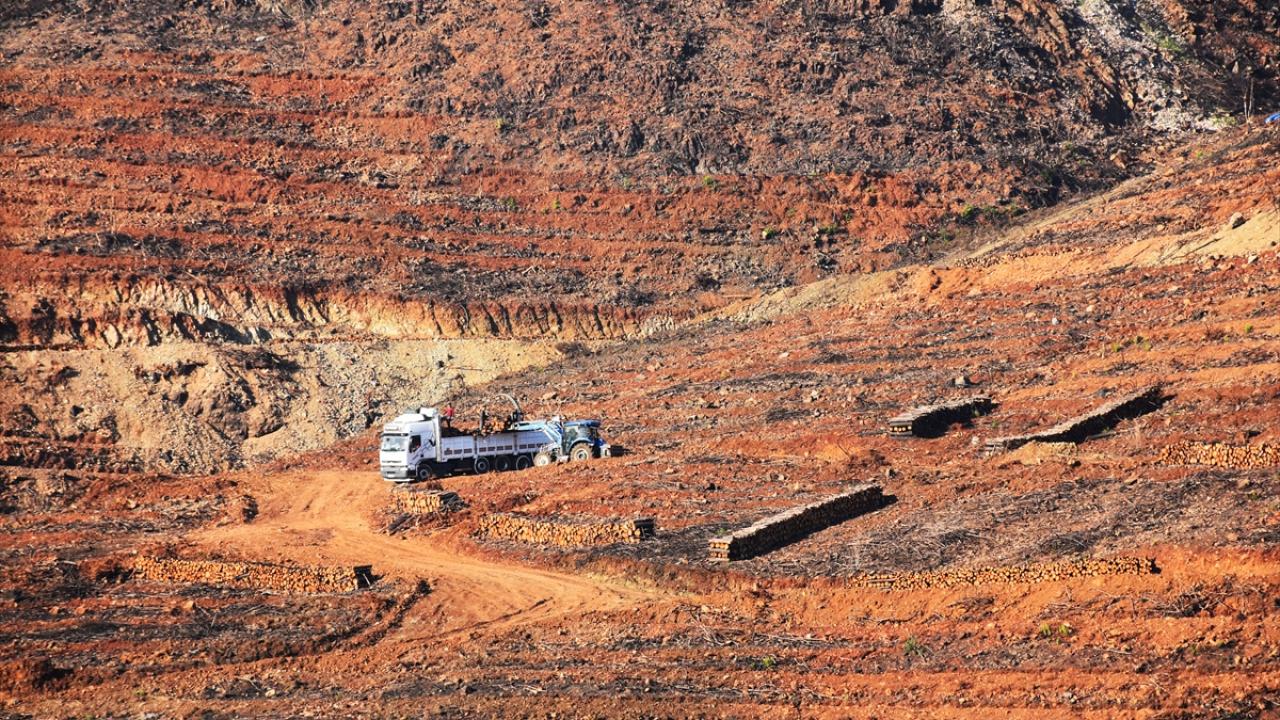 İlçede yanan alanlarda temizlik ve ağaçlandırma çalışmaları sürüyor.