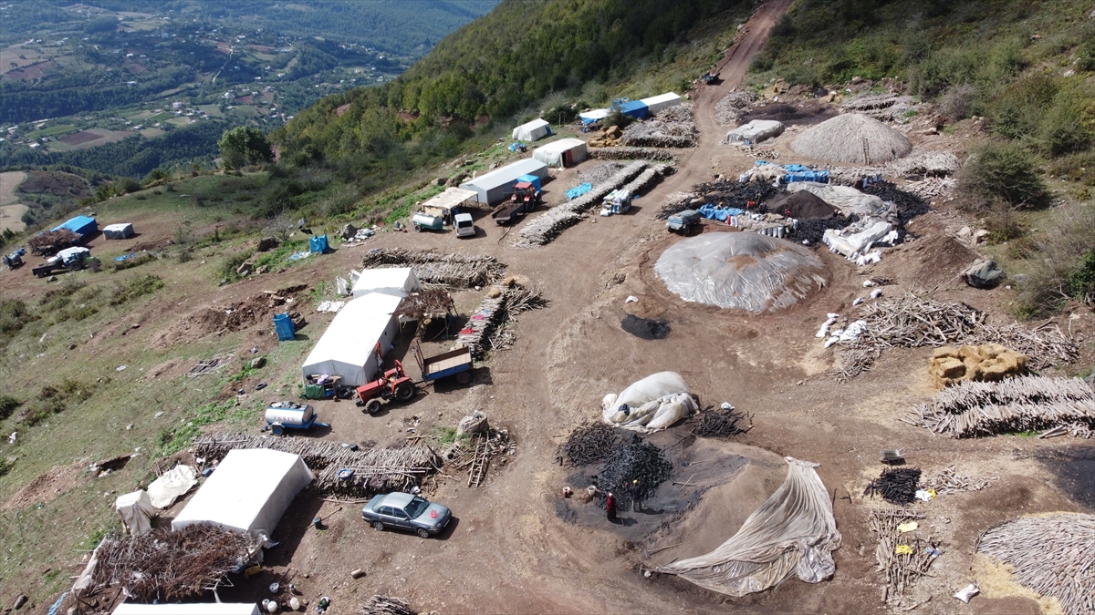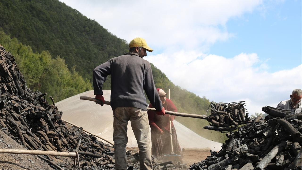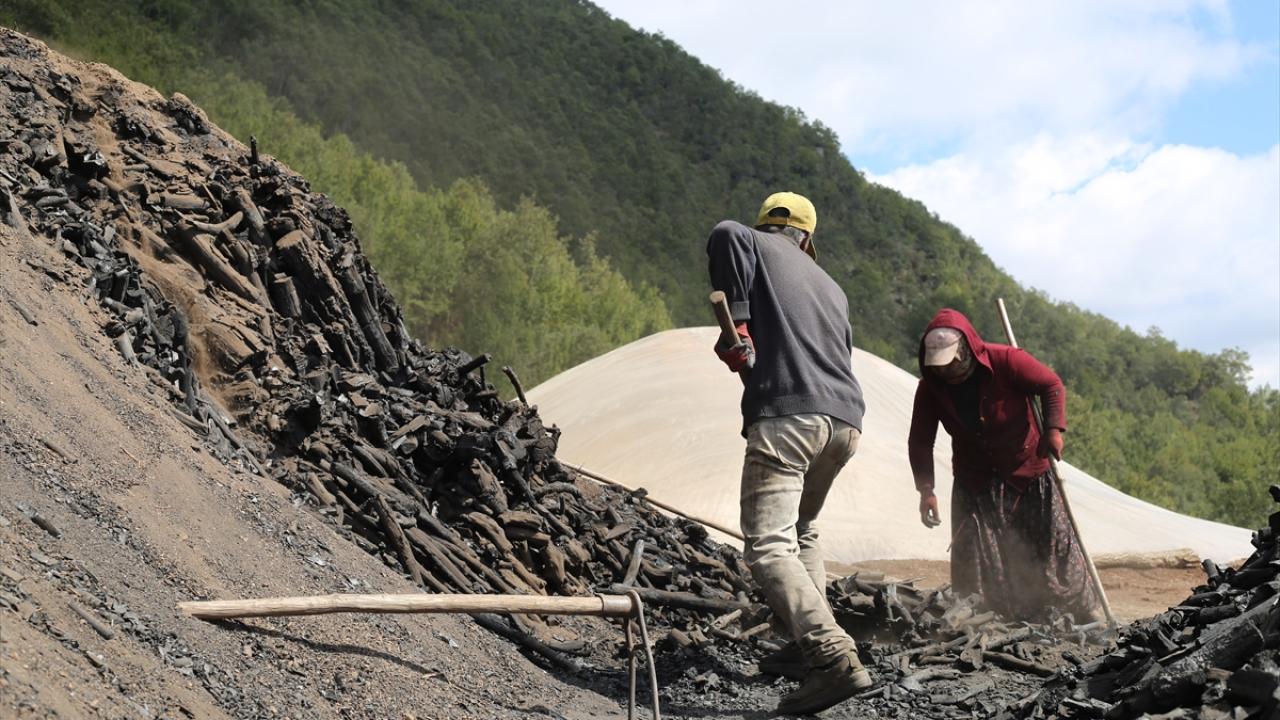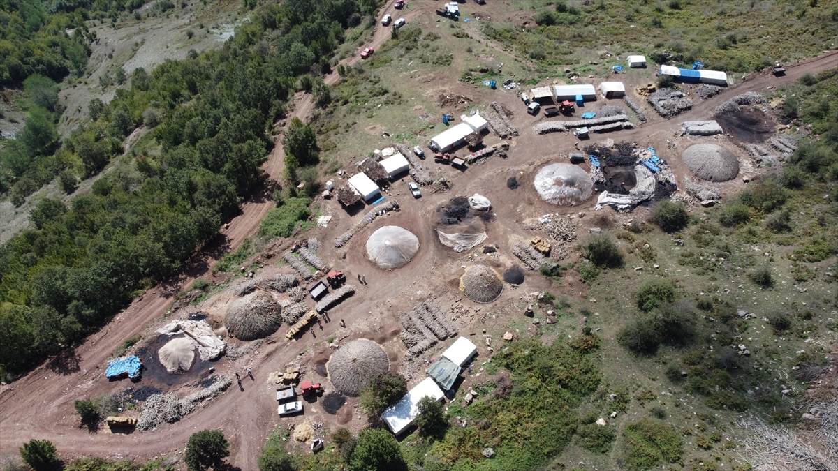 Bu ağaçların çöpe gitmediğini ve ekonomiye kazandırıldığını anlatan Eren, "Ormandan kesilen ağaçları tesisimizdeki ocaklara taşıyoruz. Ardından odunları üst üste yığıp alt taraftan ateşi yakarız. Ateş yakıldıktan sonra odunlar ortalama olarak 20-25 gün boyunca yanmaya devam eder ve kömüre dönüşür." diye konuştu.