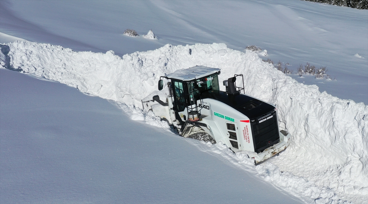 Giresun ve Ordu ile Sivas`ın Koyulhisar ilçesine hizmet veren Giresun Orman Bölge Müdürlüğü ekipleri, bin 500 ila 2 bin rakımda karla mücadele çalışması yürütüyor.