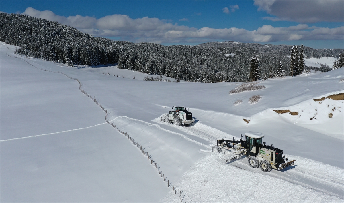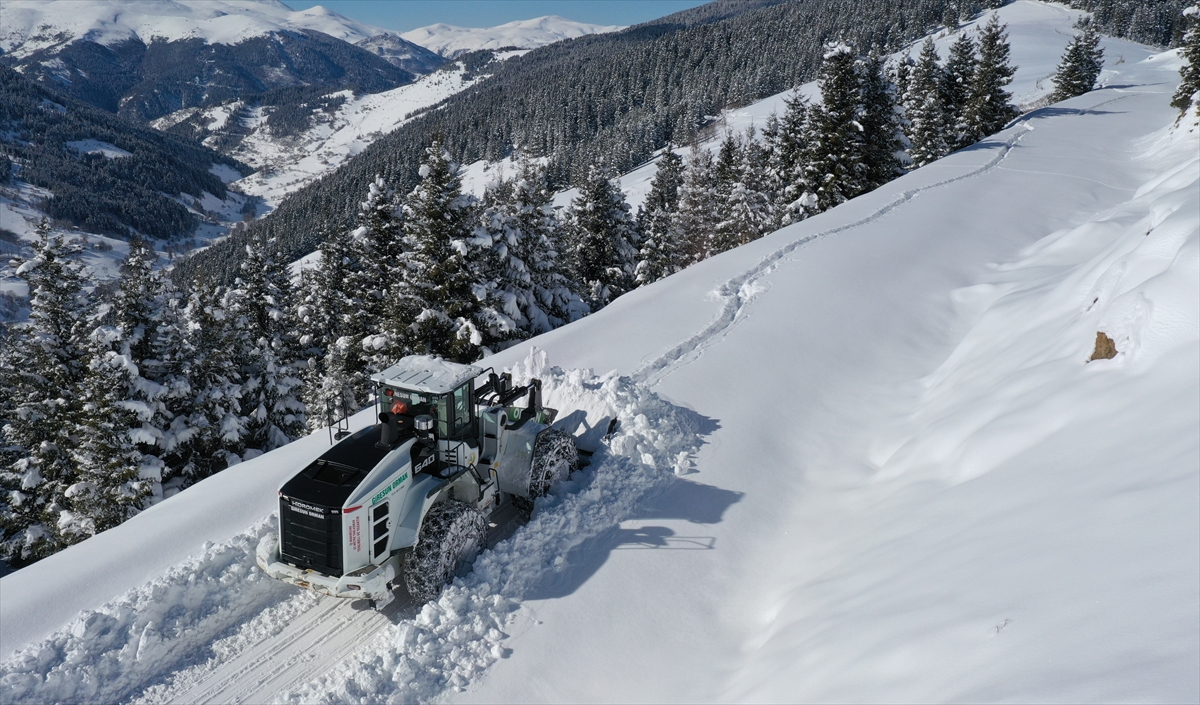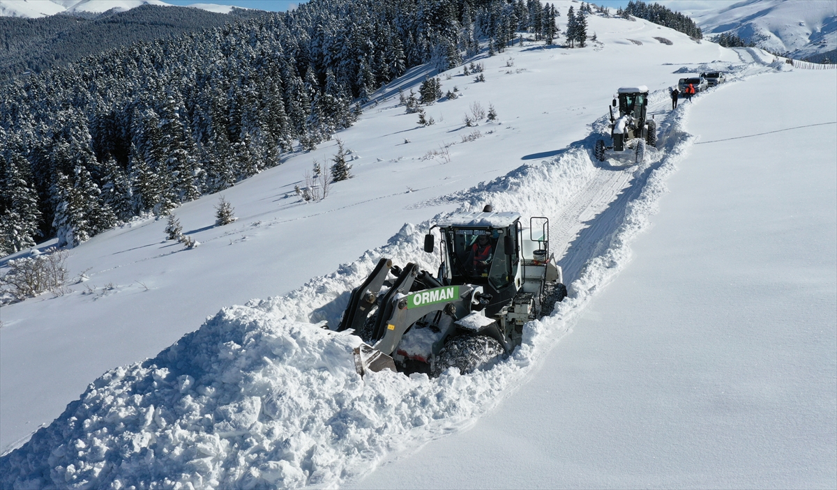 Yazın orman köylerindeki yolların düzenlenmesi, mevcut orman yollarının iyileştirilmesi ve yeni yolların açılmasında kullanılan iş makineleri, kış mevsiminde ise kar yığınlarını temizliyor.