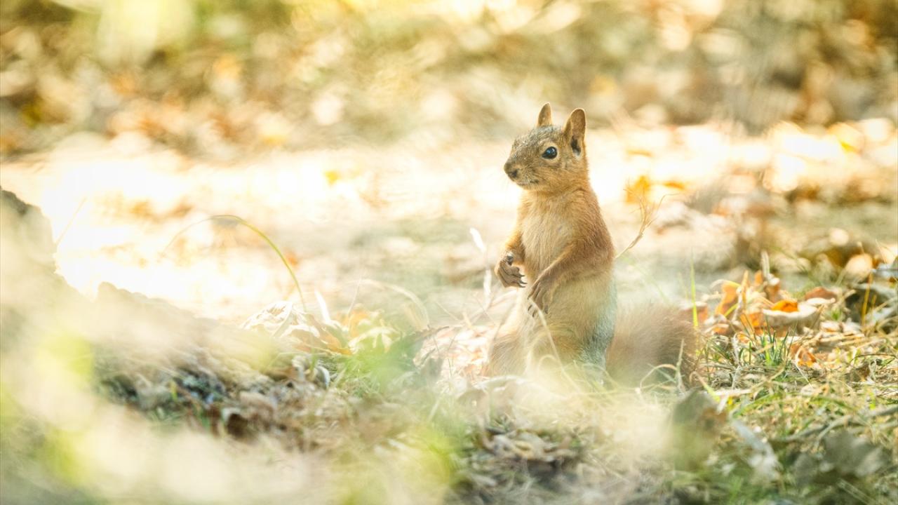 Bölgede kuşların yanı sıra sincap da yaşamını sürdürüyor.
