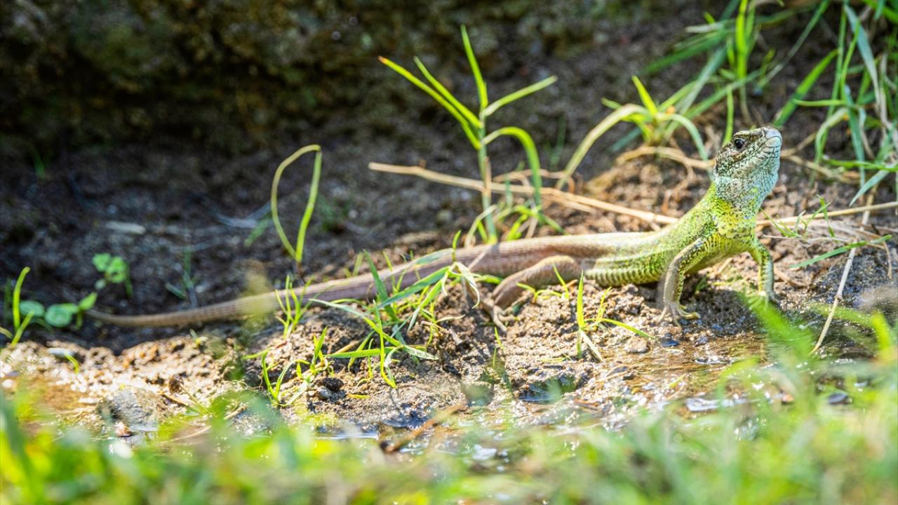Bölgede kuşların yanı sıra Yeşil Kertenkele de yaşamını sürdürüyor.