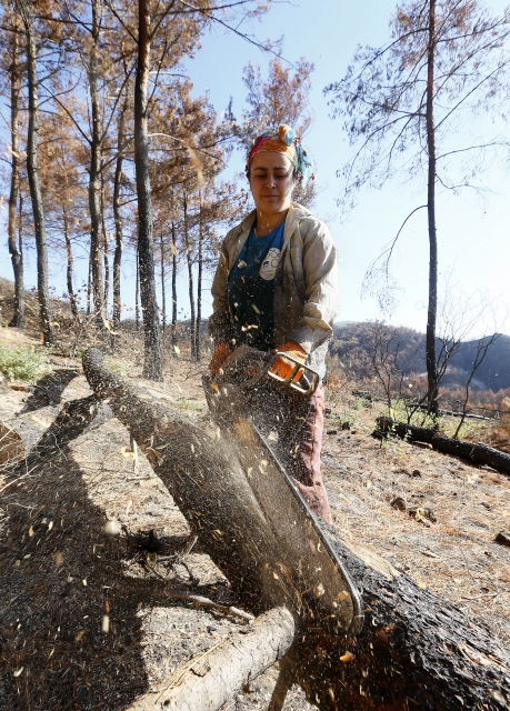 Çalışmaya gittikleri ormanlarda zor şartlarda yaşayan orman işçisi Sevinç Şahin, eşiyle birlikte dedelerinden miras kalan zorlu orman işlerini yaparak hayatını kazanıyor. Eşi Orhan ile birlikte ilden ile, ormandan ormana gezen 25 yaşındaki Şahin, İzmir'in Seferihisar ilçesine bağlı Orhanlı mahallesinde, ağustos ayındaki yangında yanan ağaçları kesiyor.
