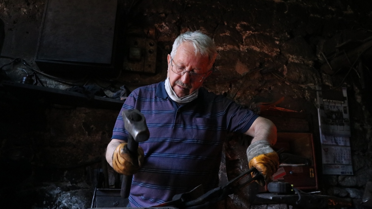 Mesleğin kentteki son temsilcilerinden Altıparmak, Eski Sanayi Sitesi`nde 30 metrekarelik dükkanında, ısıttığı demiri örs üzerinde kazma, balta, orak olarak şekillendiriyor.