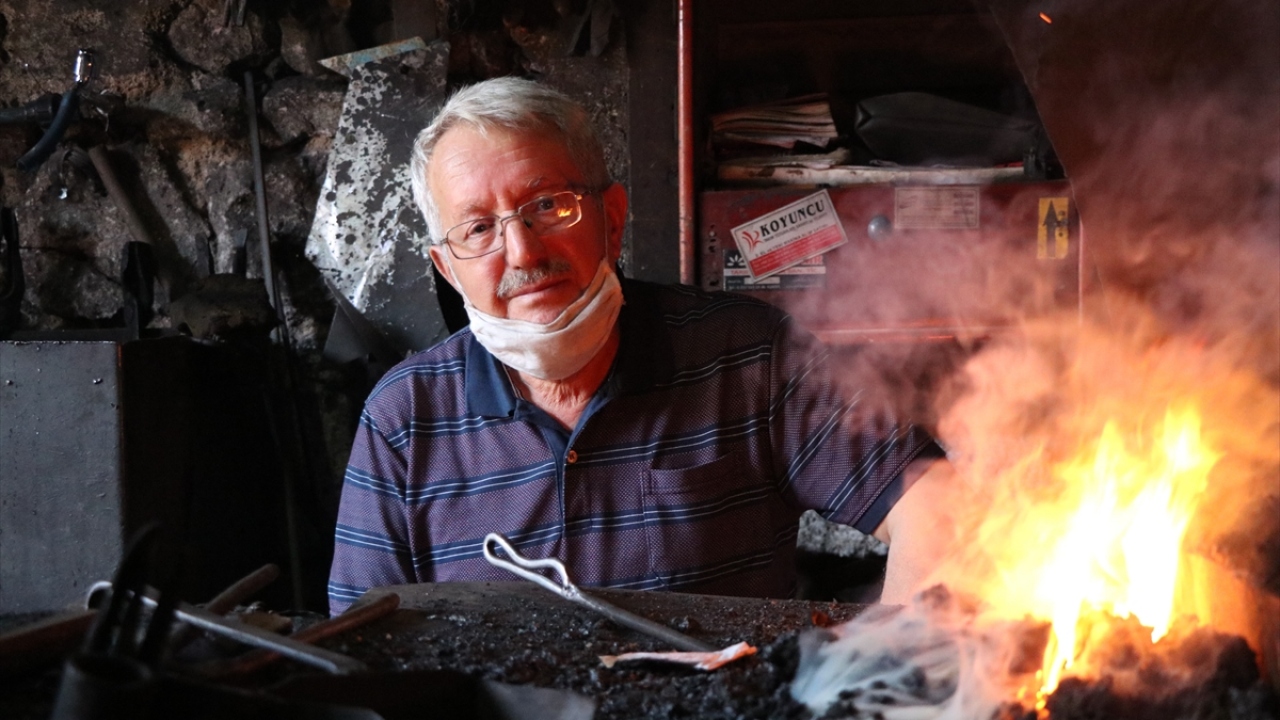 Niğde'de Duran Altıparmak, babasından öğrendiği demircilik mesleğinde, yaklaşık 45 yıldır örs üzerinde kızgın demir dövüyor.