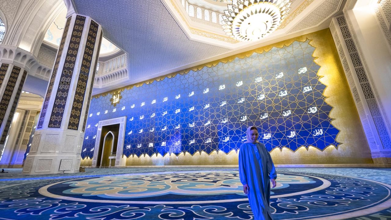 Orta Asya'nın en büyük camisi olma özelliği taşıyan Kazakistan'ın başkenti Astana'daki Büyük Nur Sultan Camisi, İslam mimarisi ve geleneksel Kazak motiflerinin bütünleştiği tasarımıyla ziyaretçilerin ilgisini çekiyor.