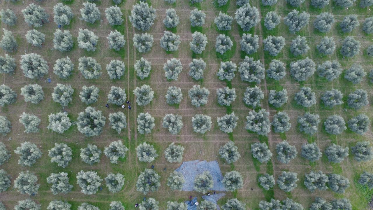 Osmanelili üreticiler, çoğunlukla sırıkla ve tarakla hasat ettikleri zeytinin zedelenmesini ve toprakla temasını ağaç altlarına "yaygı" sererek önlemeye çalışıyor.