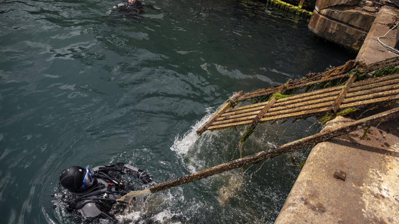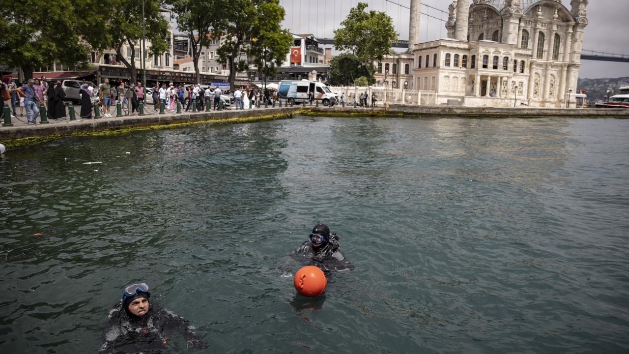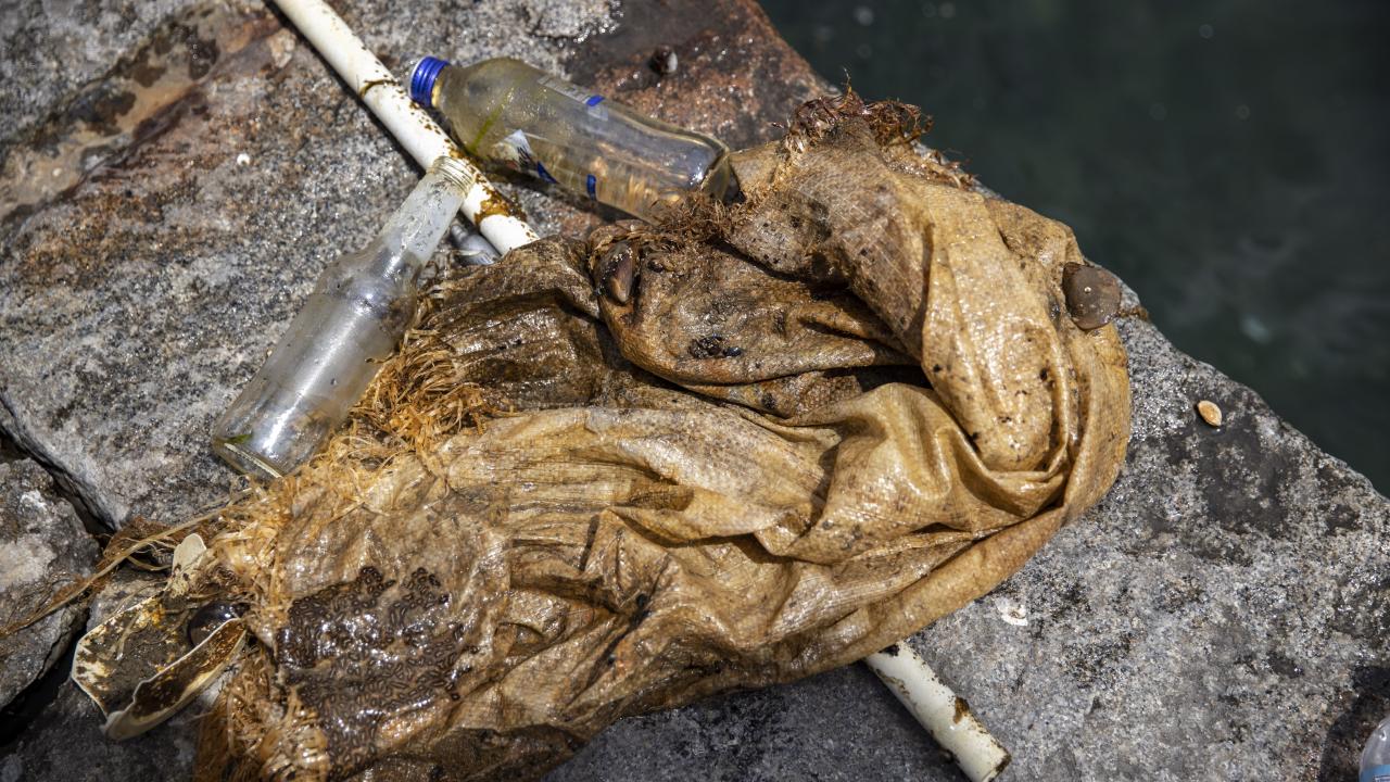 Sahil Güvenlik Komutanlığı dalgıçları, bölgede tarama yaptıktan sonra denize dalarak, cam ve plastik şişeler, çuval ve demir yığınları da dahil çeşitli atıkları karaya çıkardı.