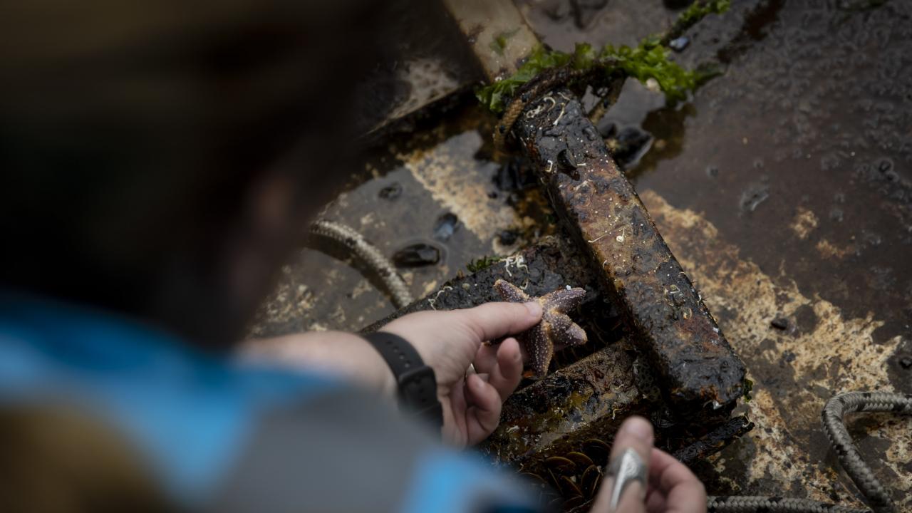 Atıkların üzerinde bulunan deniz yıldızları, denize geri bırakıldı.