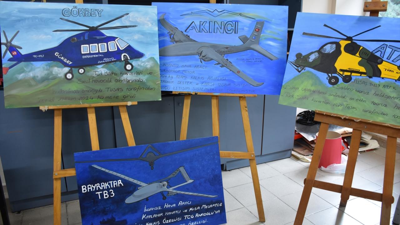 Öğrencilerin çok emek verdiğini, ortaya çok güzel işler çıktığını anlatan Öncel, öğrencilerin haberlerde ve sosyal medyada tanıtımını gördükleri yerli ve milli eserleri gözlemleyerek tuvale yansıttıklarını belirtti.
