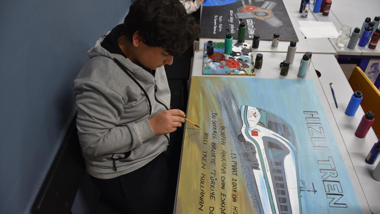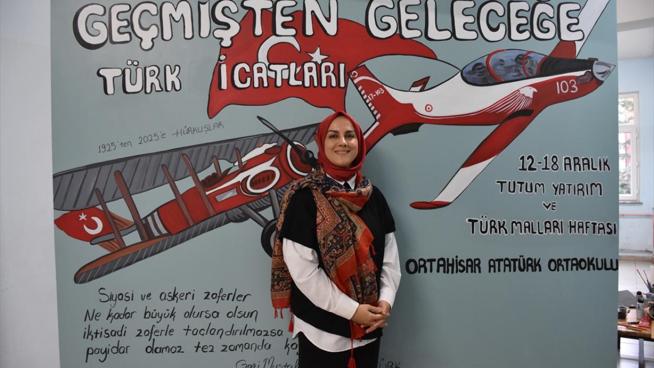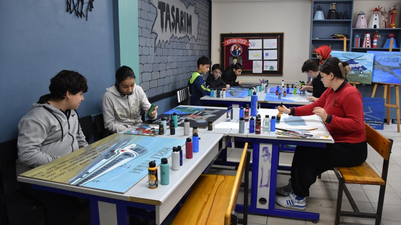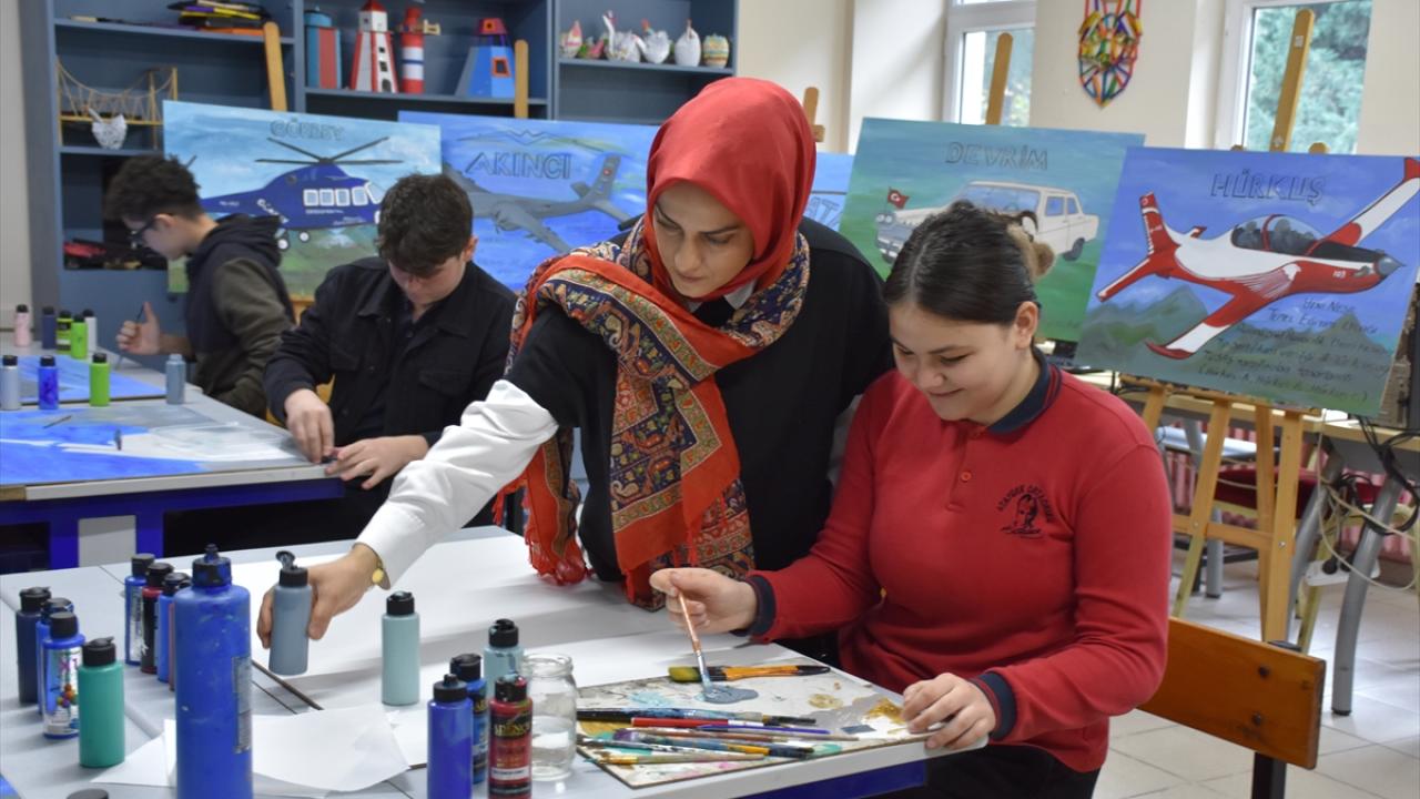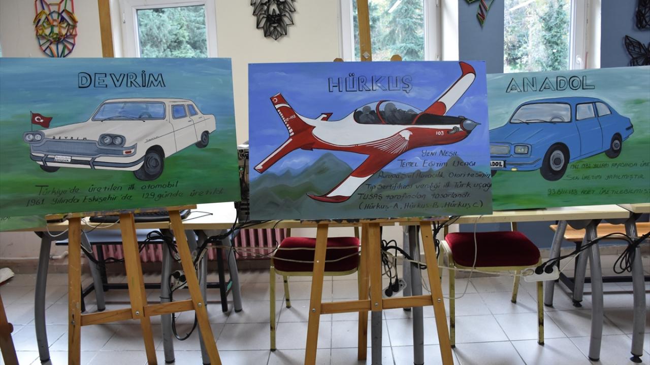 Atatürk Ortaokulu görsel sanatlar öğretmeni Burcu Öncel, Türkiye Cumhuriyeti`nde bugüne dek hayata geçirilen milli ve yerli projeleri öğrencileriyle resmetmeye karar verdi.
