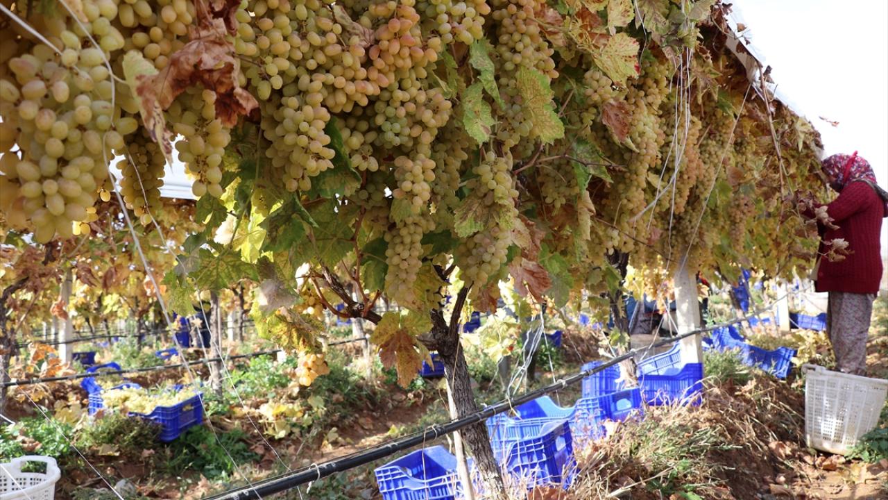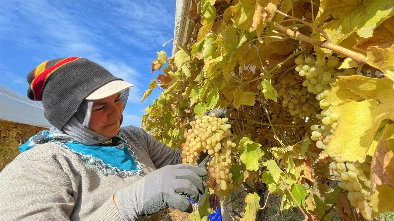 Örtü altında hasadı geciktirilen üzümler kış sofralarını süsleyecek
