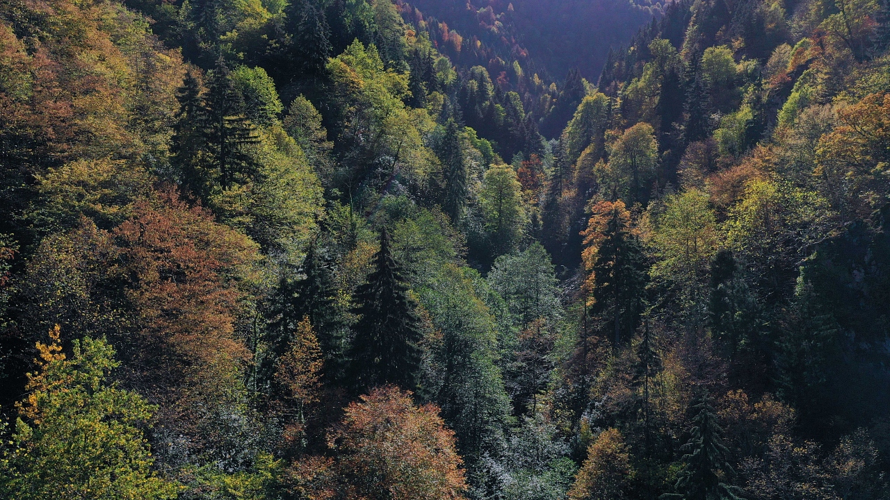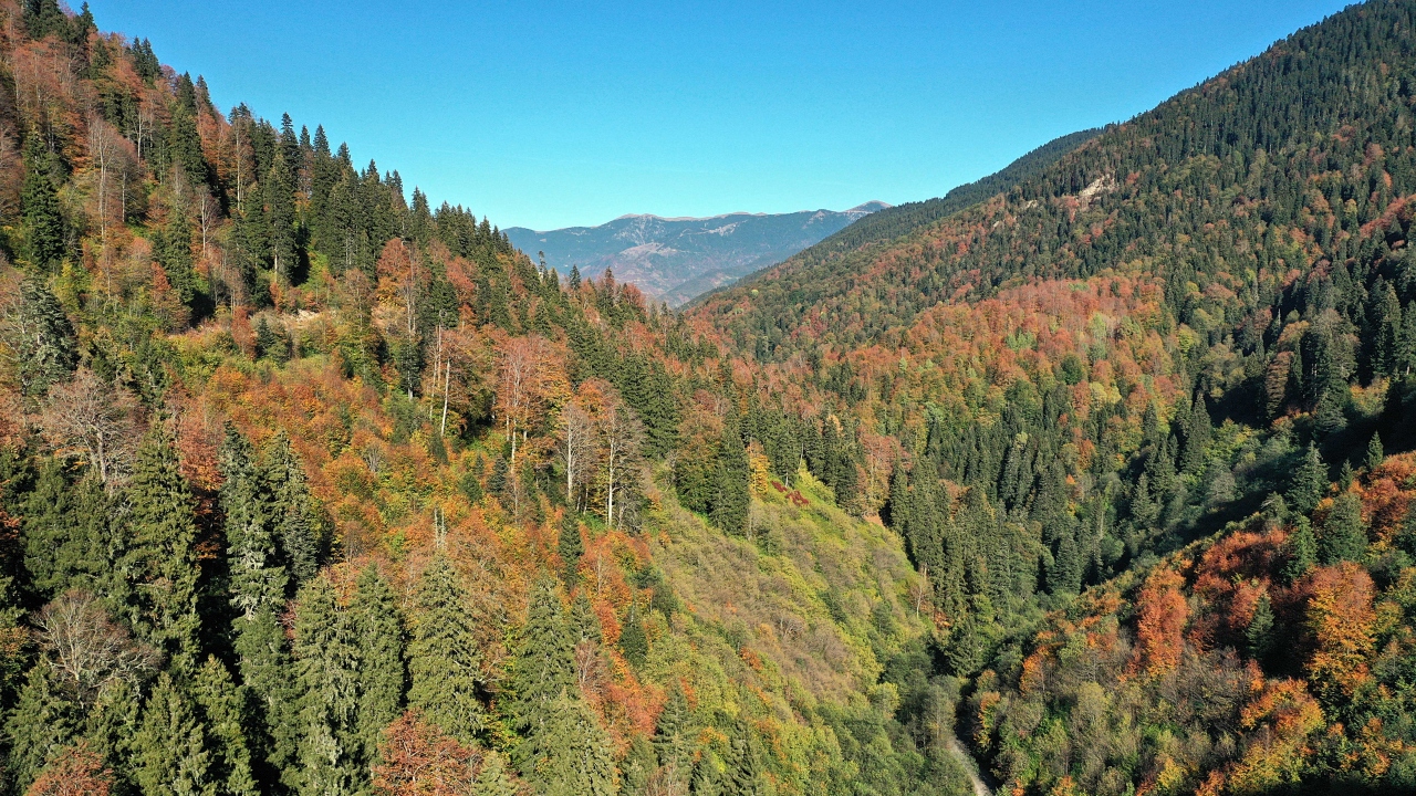 Gümüşhane'de yüksek köknarlar, uzun ladin ağaçları ve sık bitki örtüsüyle öne çıkan ve kesin korunacak hassas alan ilan edilen "Örümcek Ormanları"nda sonbahar, güzel görüntüler oluşturdu.