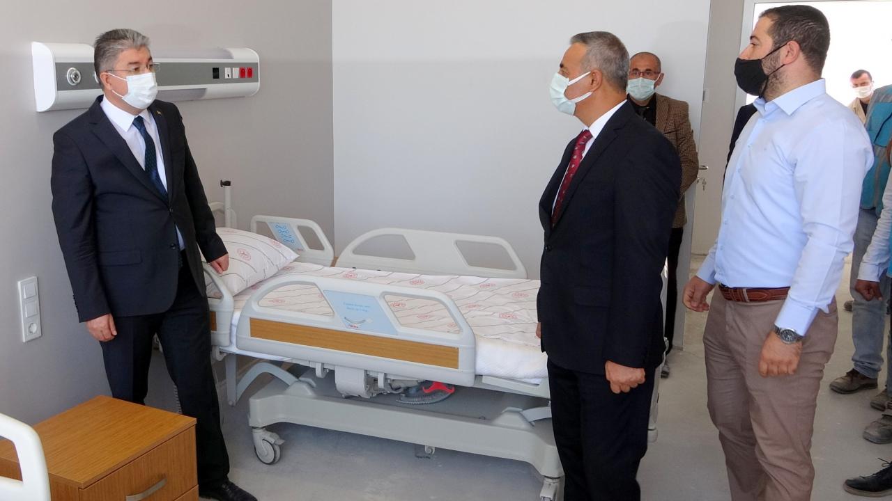 Örnek oda olarak oluşturulan hasta servis odasını da inceleyen Vali Yılmaz, daha sonra İl Sağlık Müdürü Dr. Hasan Öznavruz ile birlikte Şantiye Şefi Ünal Berat Baylan’dan hastanenin kat düzenlemesi ve oturumu hakkında brifing aldı.