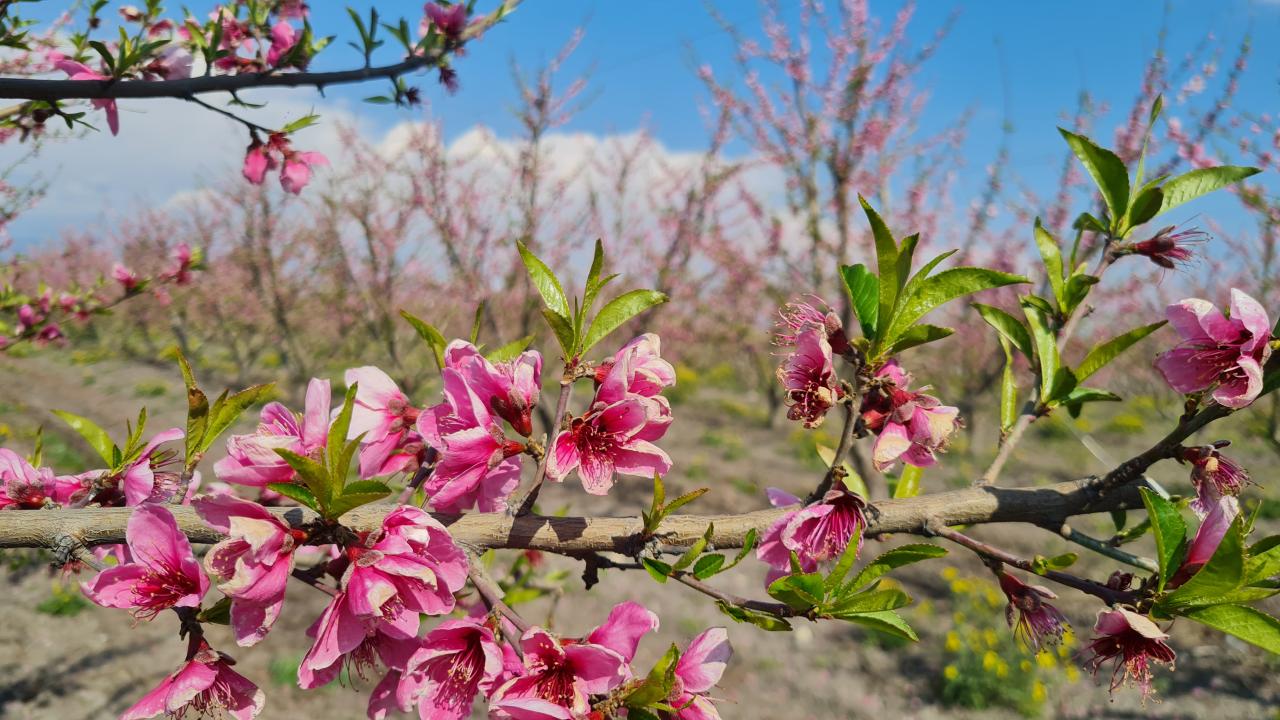 Osmaniye'nin Kadirli ilçesinde hava sıcaklıklarının mevsim normallerinin üzerinde seyretmesi nedeniyle bazı meyve ağaçları, erken çiçek açtı.
