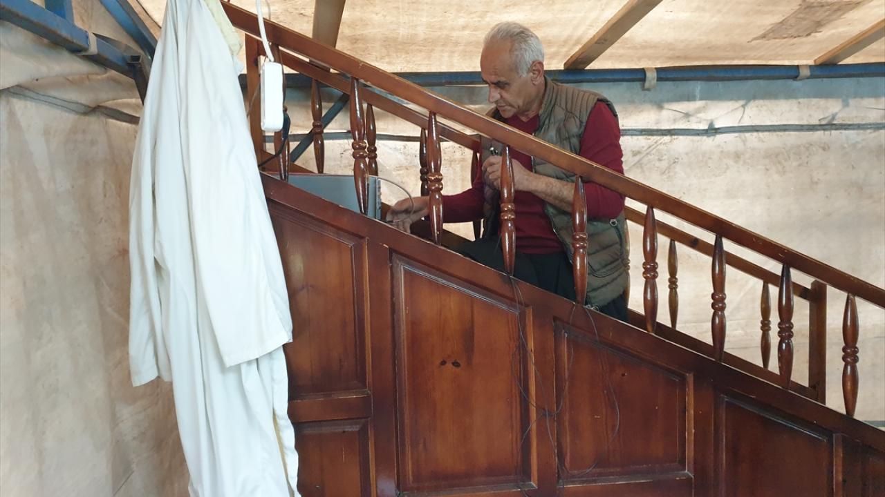 Deprem gecesi minarenin yıkılış sesini duyunca camiye koştuklarını aktaran Türkmenoğlu, cami şu an kullanılamadığı için amcasının tarlasına geçici olarak çadırdan ibadethane yaptıklarını anlattı.