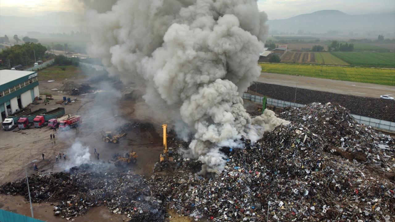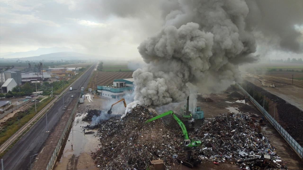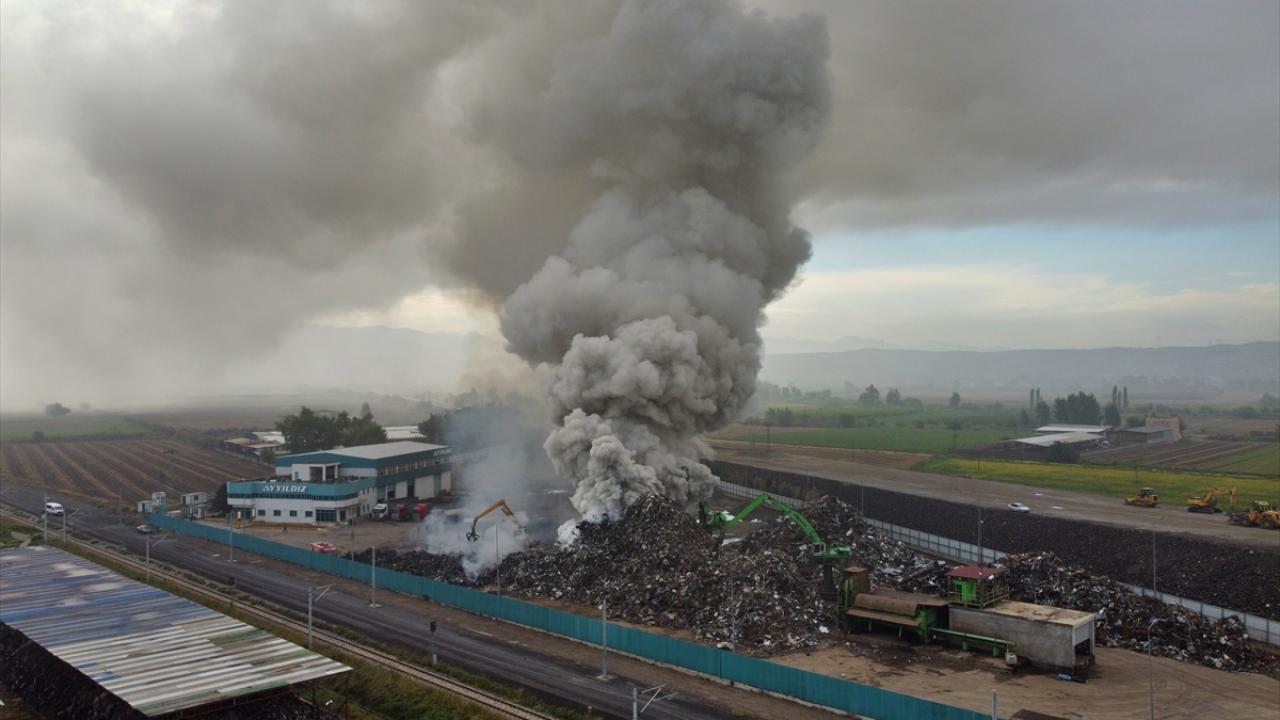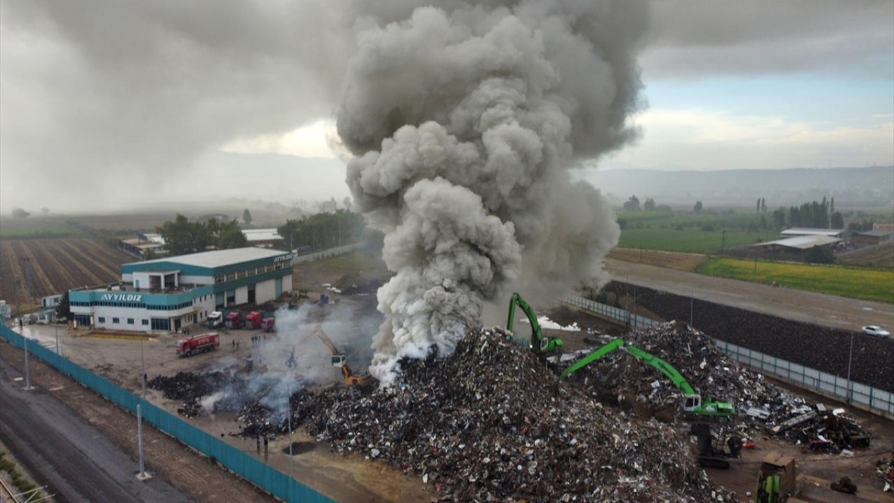 Osmaniye'de geri dönüşüm tesisinde çıkan yangına müdahale ediliyor