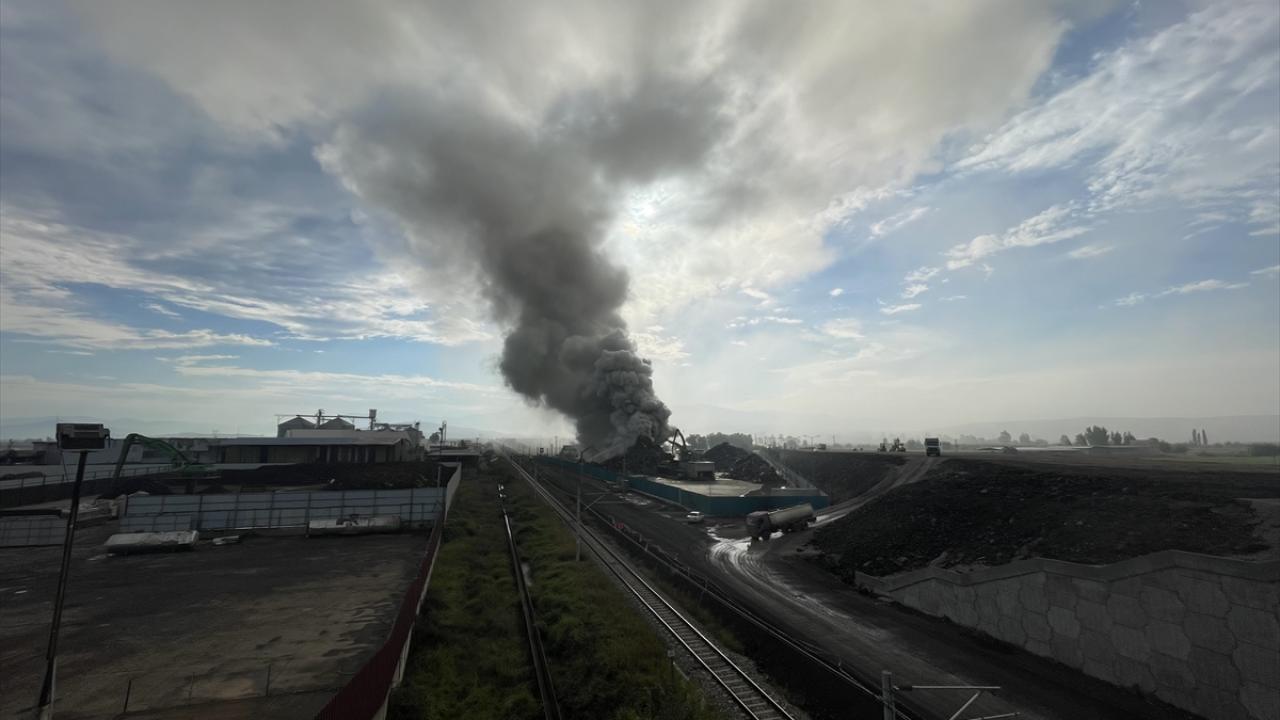 Osmaniye'nin Toprakkale ilçesinde geri dönüşüm tesisinde çıkan yangın kontrol altına alınmaya çalışılıyor.