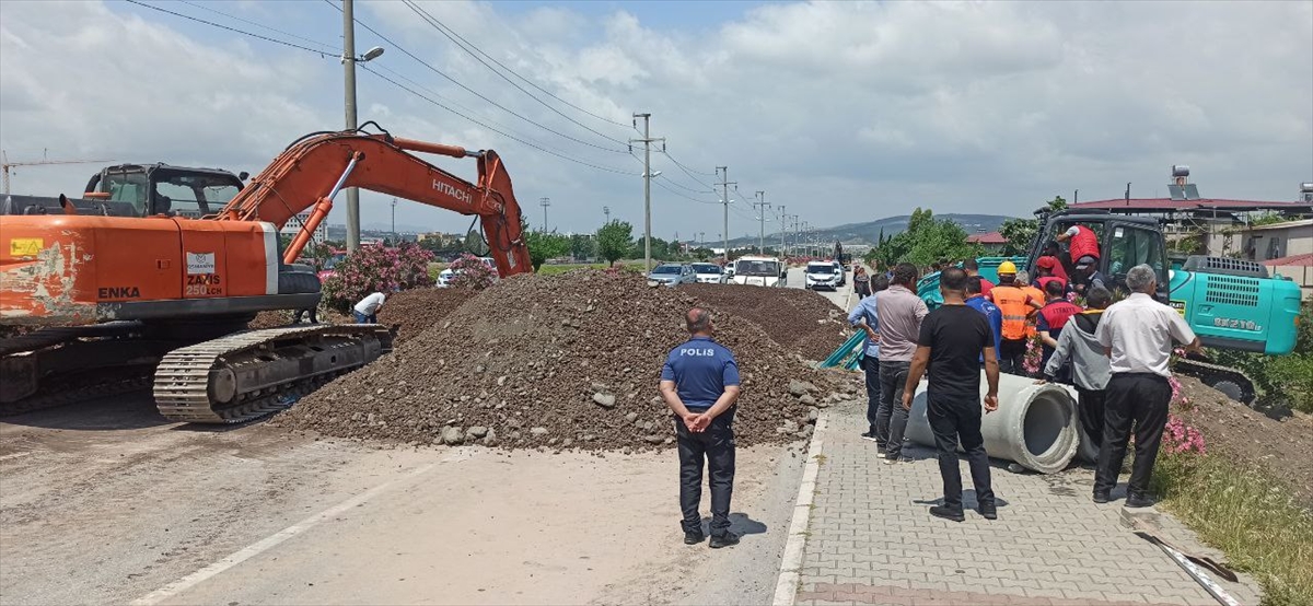 Bölgeye sevk edilen itfaiye ve AFAD ekipleri, toprak altındaki işçiyi kurtarmak için çalışma başlattı.