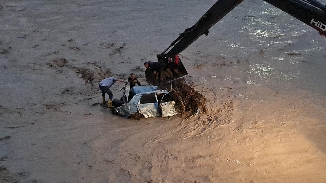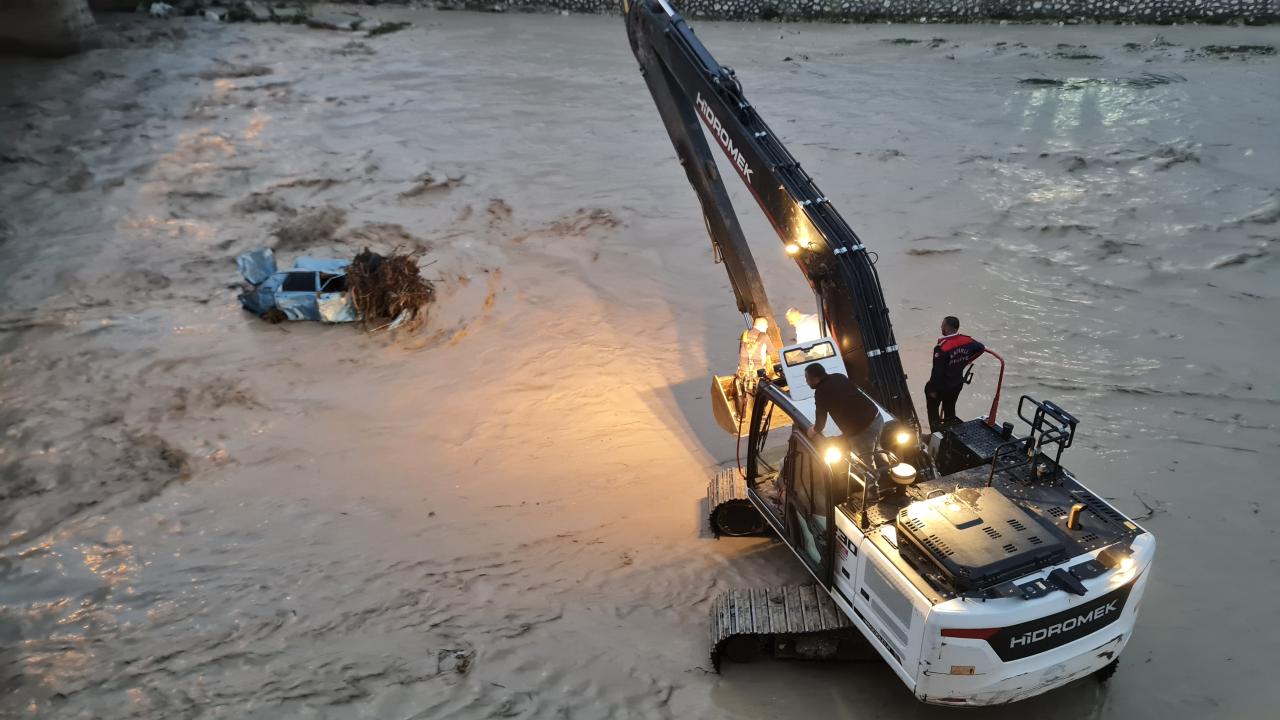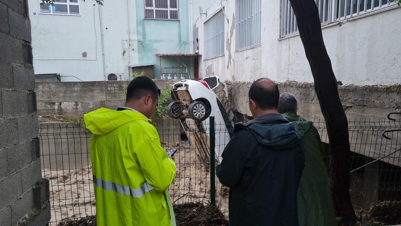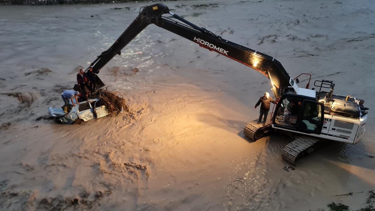 Taşma sonucu park halindeki 7 otomobil dere yatağına sürüklendi, bazı tarım arazileri de sular altında kaldı.
