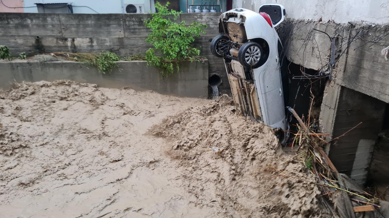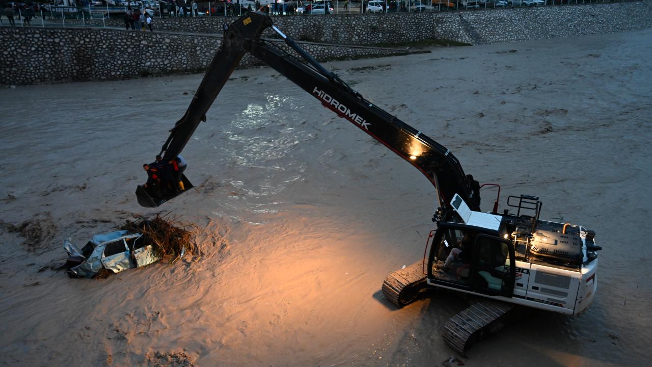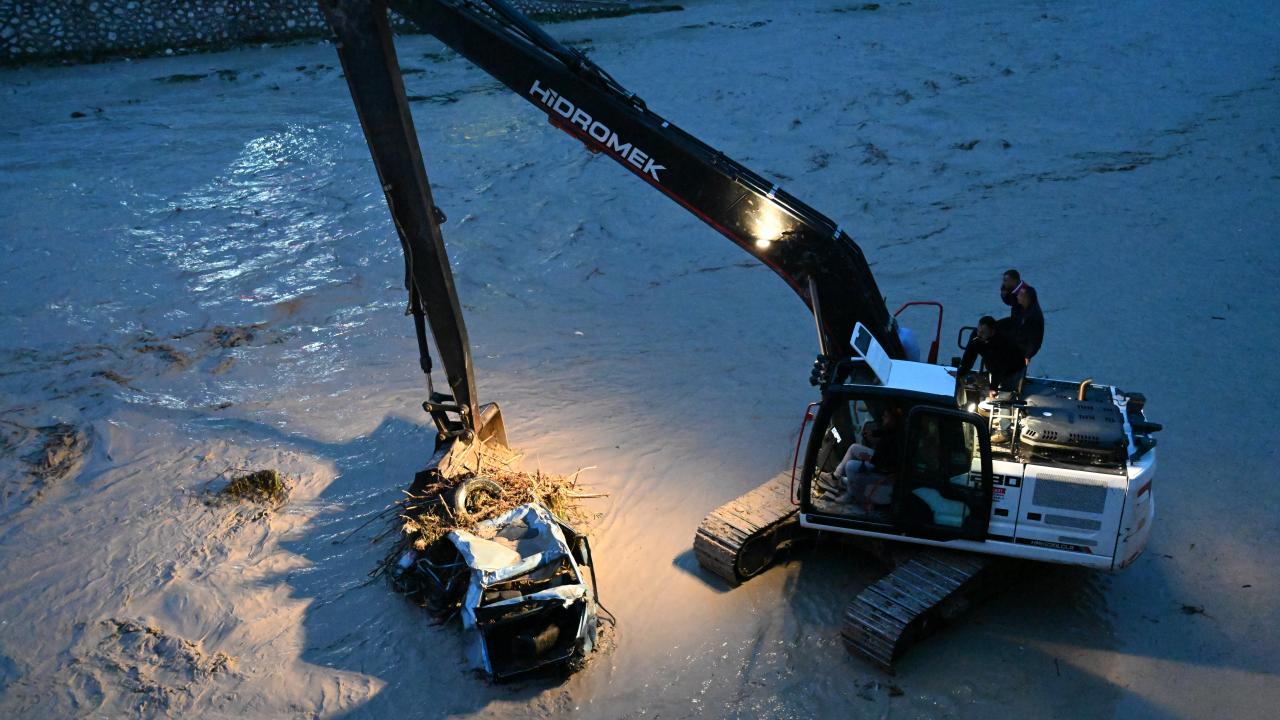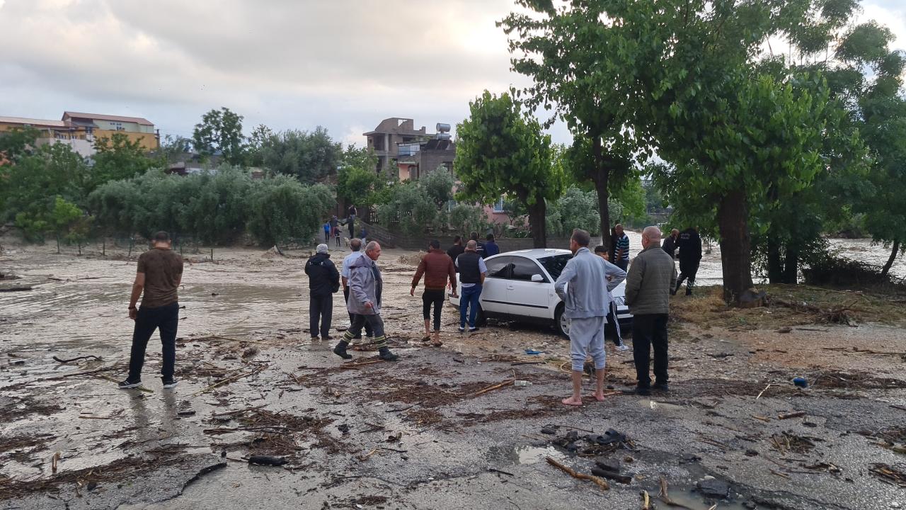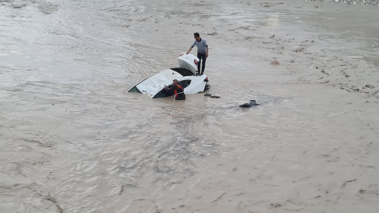 Taşma sonucu park halindeki 7 otomobil dere yatağına sürüklendi, bazı tarım arazileri de sular altında kaldı.
