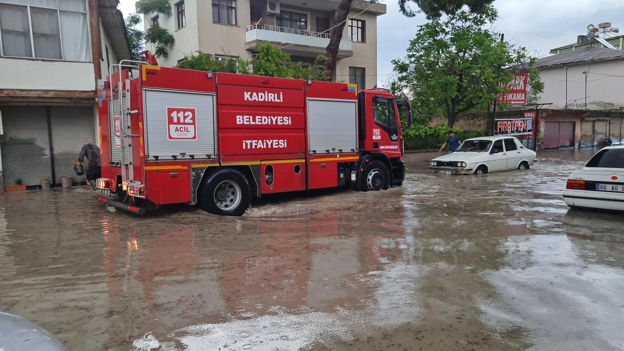 Yağışın ardından iki ilçedeki birçok ev ve iş yerinde su baskınları meydana geldi, Kadirli-Sumbas kara yolu da 20. kilometreden itibaren trafiğe kapatıldı.