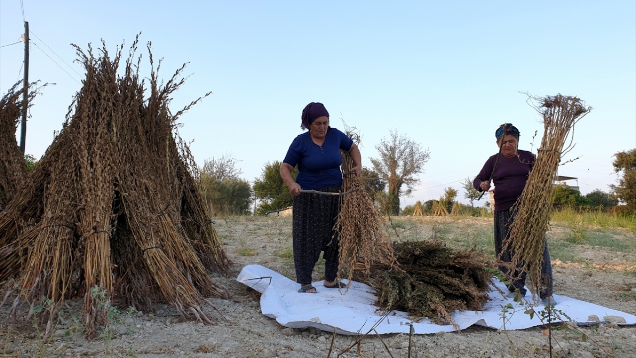 Karatepe köyünde susam üreten Rahime Savrun, imece usulüyle hasadı yapılan susamın zahmetli yolculuğunun ardından sofralardaki yerini aldığını belirterek, "İmece usulü sabah veya akşam üzeri serinlikte tek tek topraktan çıkarıyor, kümeler haline getirdikten sonra ortalama 20 gün güneşte kurumasını bekliyoruz. Küçük çubuklarla çırparak dalından ayrılmasını sağlıyoruz. Eledikten sonra hazır hale getiriyoruz." dedi.