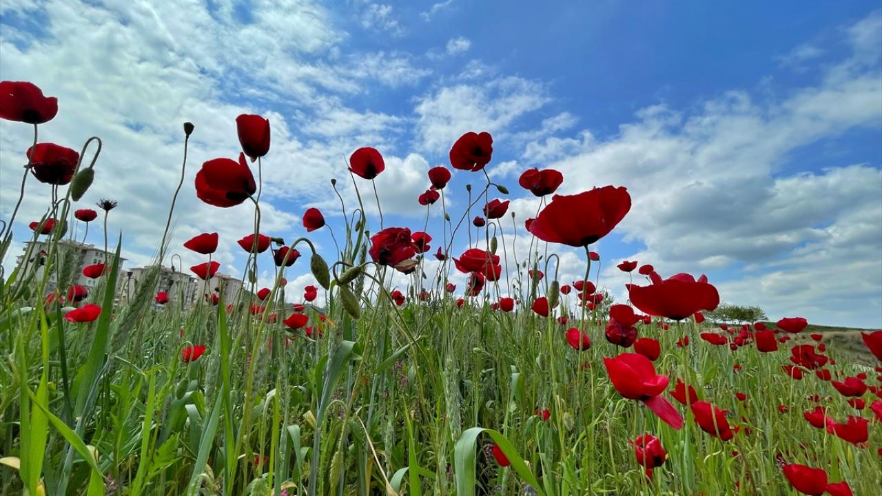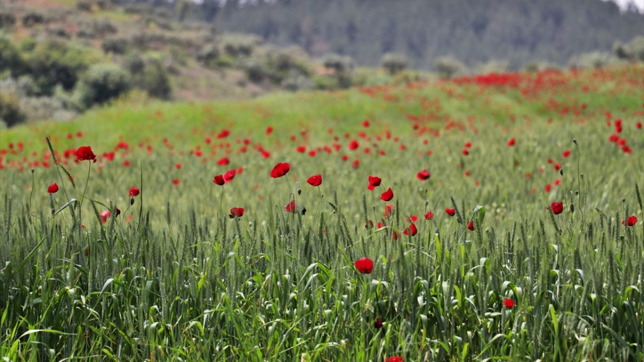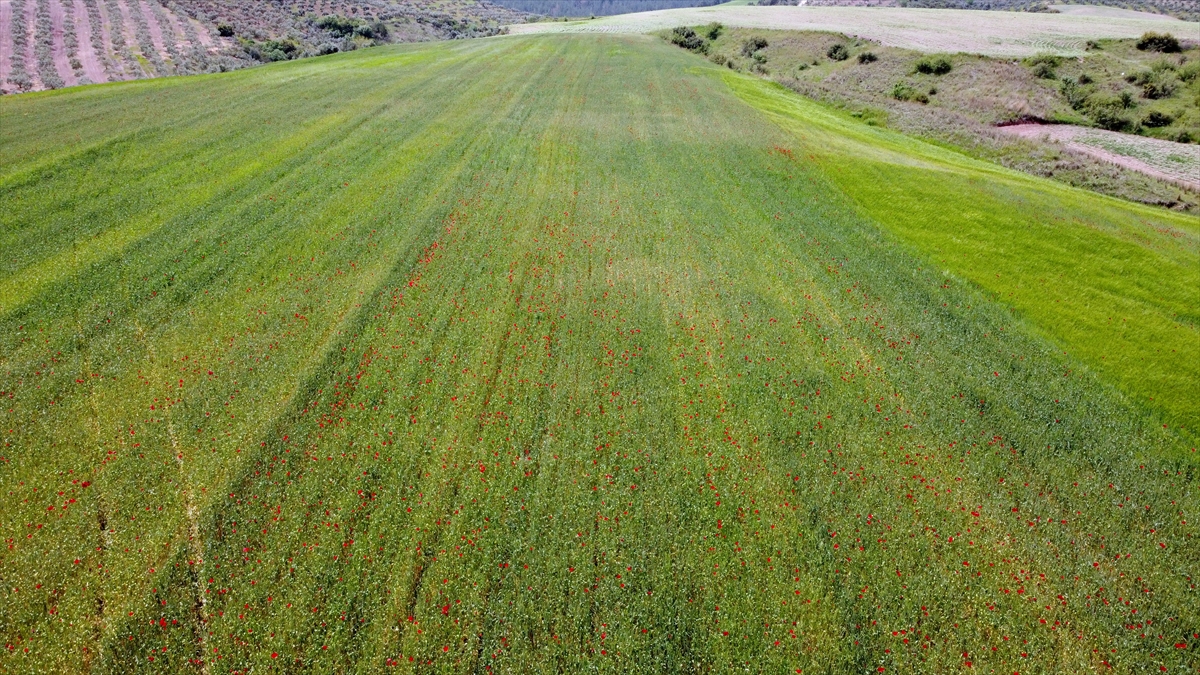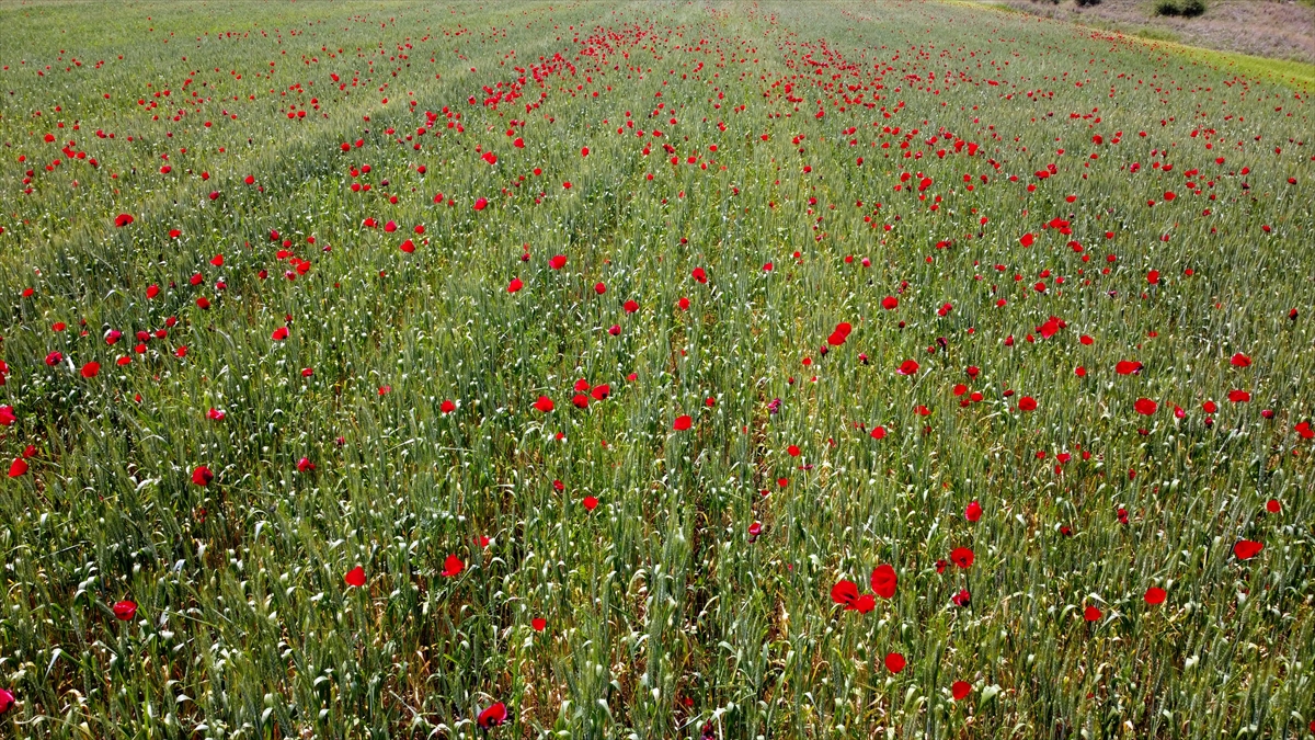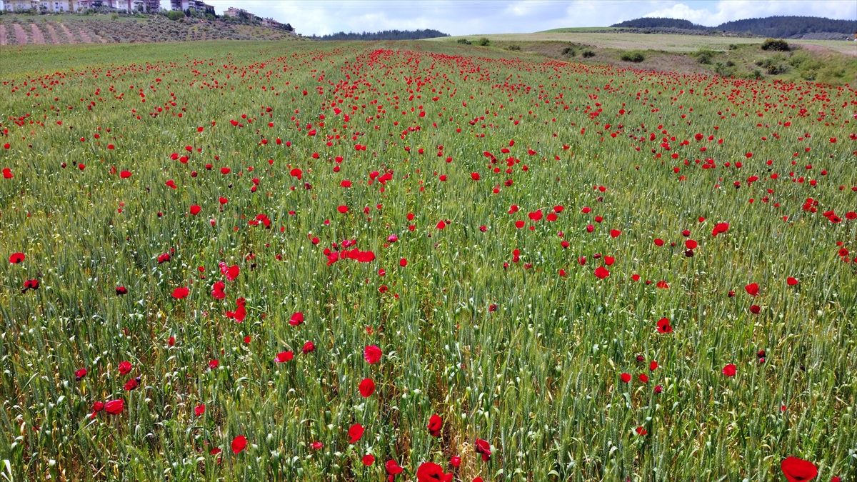 Osmaniye'de buğday tarlalarında açan gelincikler, güzel manzaralar oluşturdu.
