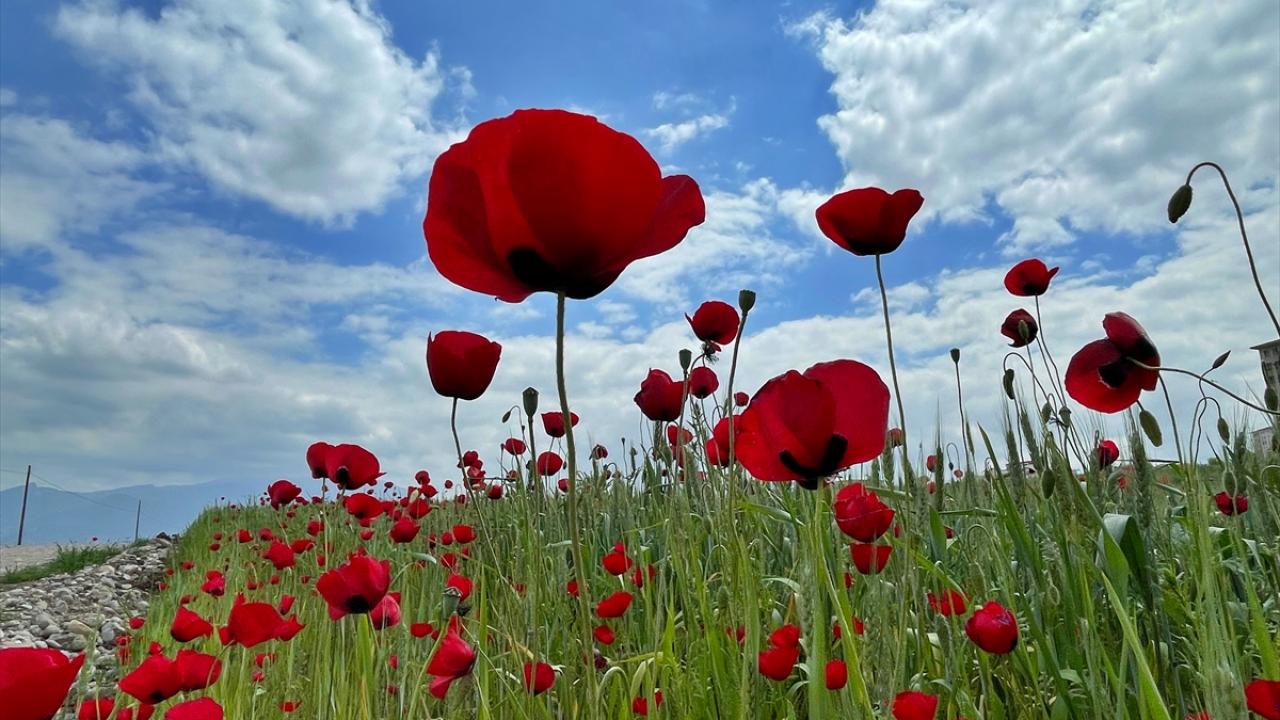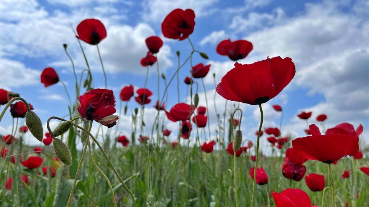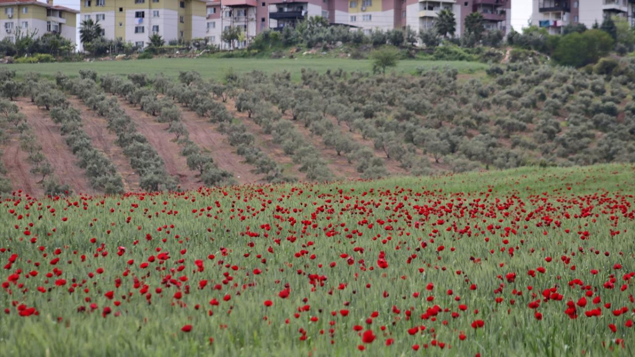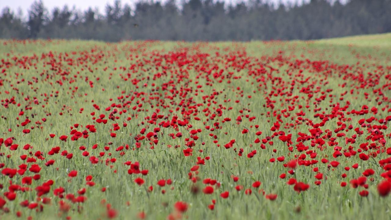 Osmaniye'de buğday tarlalarında açan gelincikler, güzel manzaralar oluşturdu.