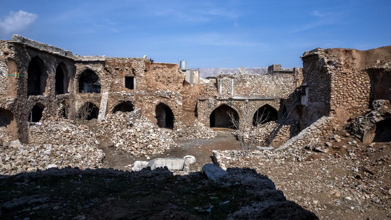 İki katlı ve 60`a yakın odası bulunan kervansaray, geçmişte birkaç restorasyondan geçse de yıkılan duvarlarına ait taşlarının avluda ve odalarda toplandığı görülüyor.