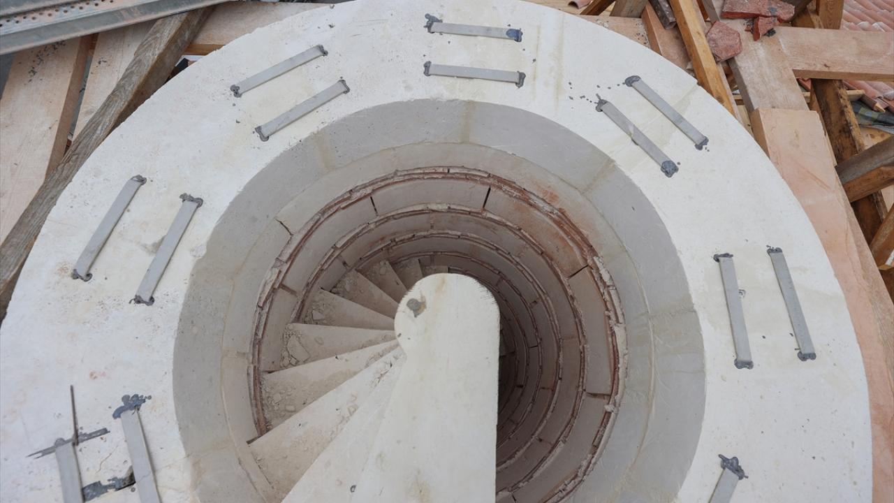 İnşaatta küfeki taşı, almaşık örgü, kesme taş, ahşap hatıllar, paslanmaz metal kenetler, kurşun zıvanalar ve asma makas kullanıldığını belirten Akın, tamamıyla geleneksel malzemeler, detaylar ve tekniklerle çalışma yapıldığını aktardı.