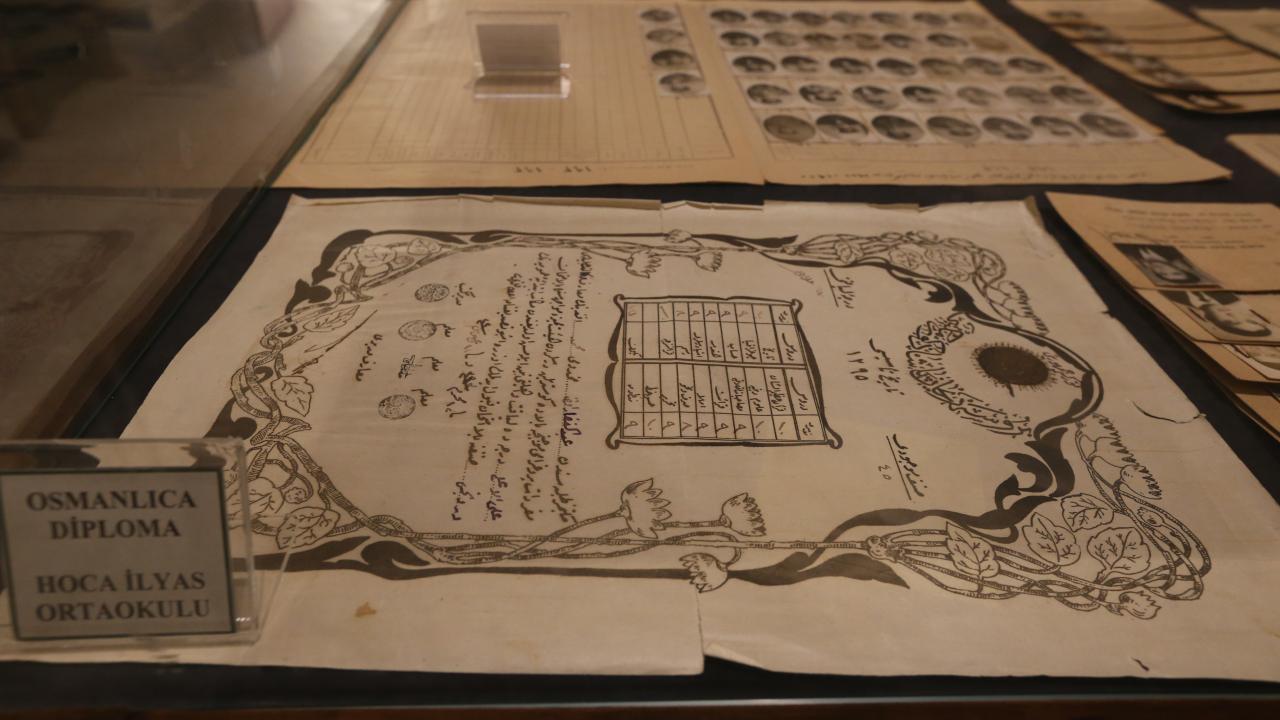 Osmanlı döneminde kullanılan ders kitapları, fizik, kimya, biyoloji gibi derslerde kullanılan teknik aletler, eski plak ve daktilolar, eski diploma ve mezuniyet belgelerinin yanı sıra Cumhuriyet`in kurucusu Gazi Mustafa Kemal Atatürk`ün 1927 tarihli ilk baskı Osmanlı Türkçesi "Nutuk" da sergilenen eserler arasında bulunuyor.