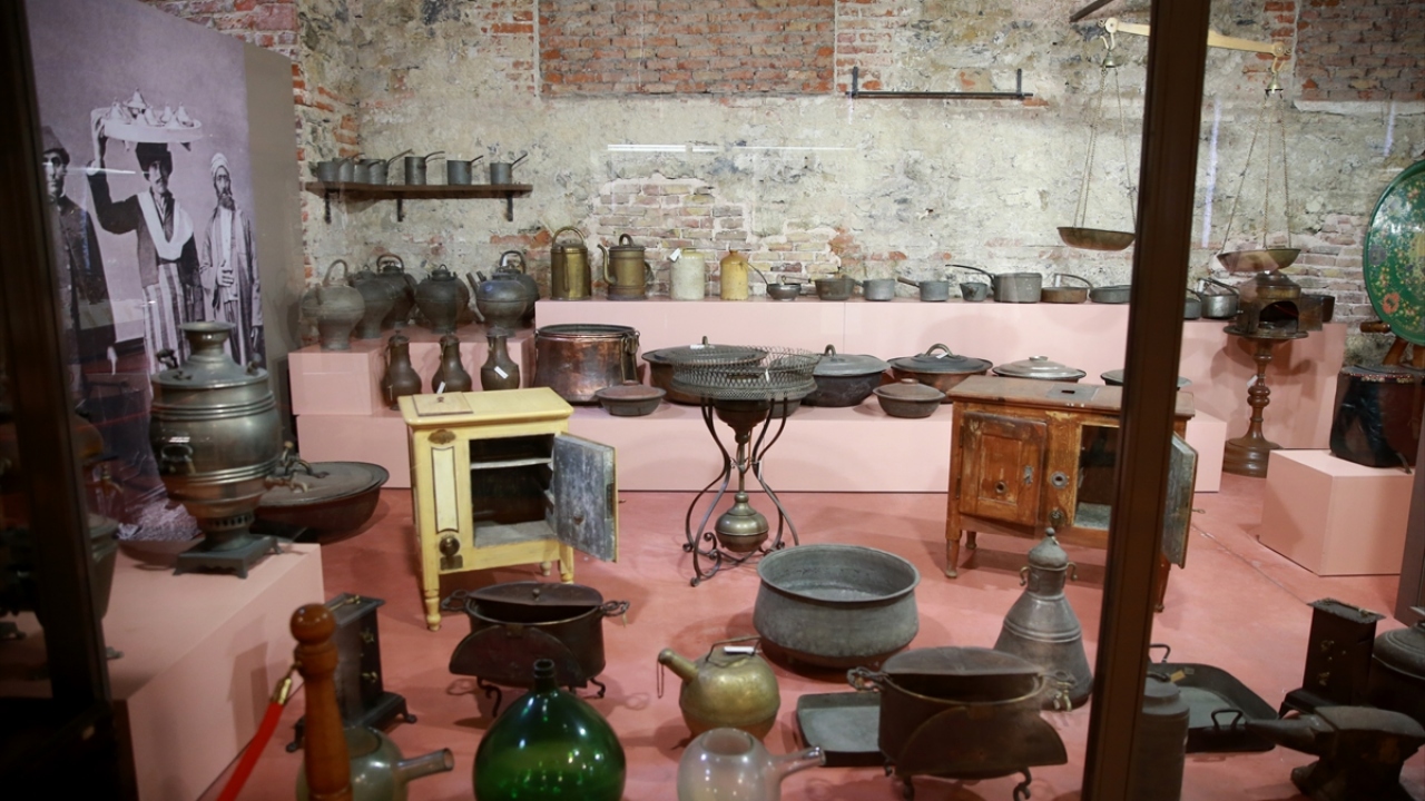 Müzedeki, Osmanlı saray mutfağında kavurucu yaz sıcaklarında kullanılan araç ve gereçler dikkati çekiyor.