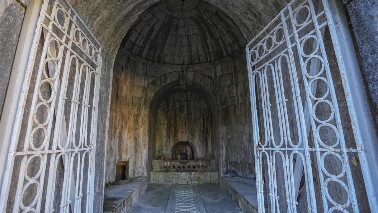 "Bendin bu kemerde gördüğünüz gibi eğrisel bir planı var, daha öncekiler düz duvar şeklinde. Avrupa`daki örneklerine de benzeyen bir plan, burada Batı etkilerini görüyoruz hem ampir üslubun özelliklerini taşıyor hem barok özellikler var ama bu özellikler yapının bu kütlesel görünüşü ya da görsel büyüklüğünün önüne geçmiyor, çok ölçülü bir şekilde yapılmış. O yukarıda gördüğünüz demir parmaklıklarda ya da kitabesinin üstündeki ışınsal bezemelerde ampir üslubun özelliklerini görüyoruz, çörtenlerinde ona keza barok özellikleri görüyoruz. Günümüze daha yakın ve Avrupa özelliklerini taşımaya başlayan bir bent."